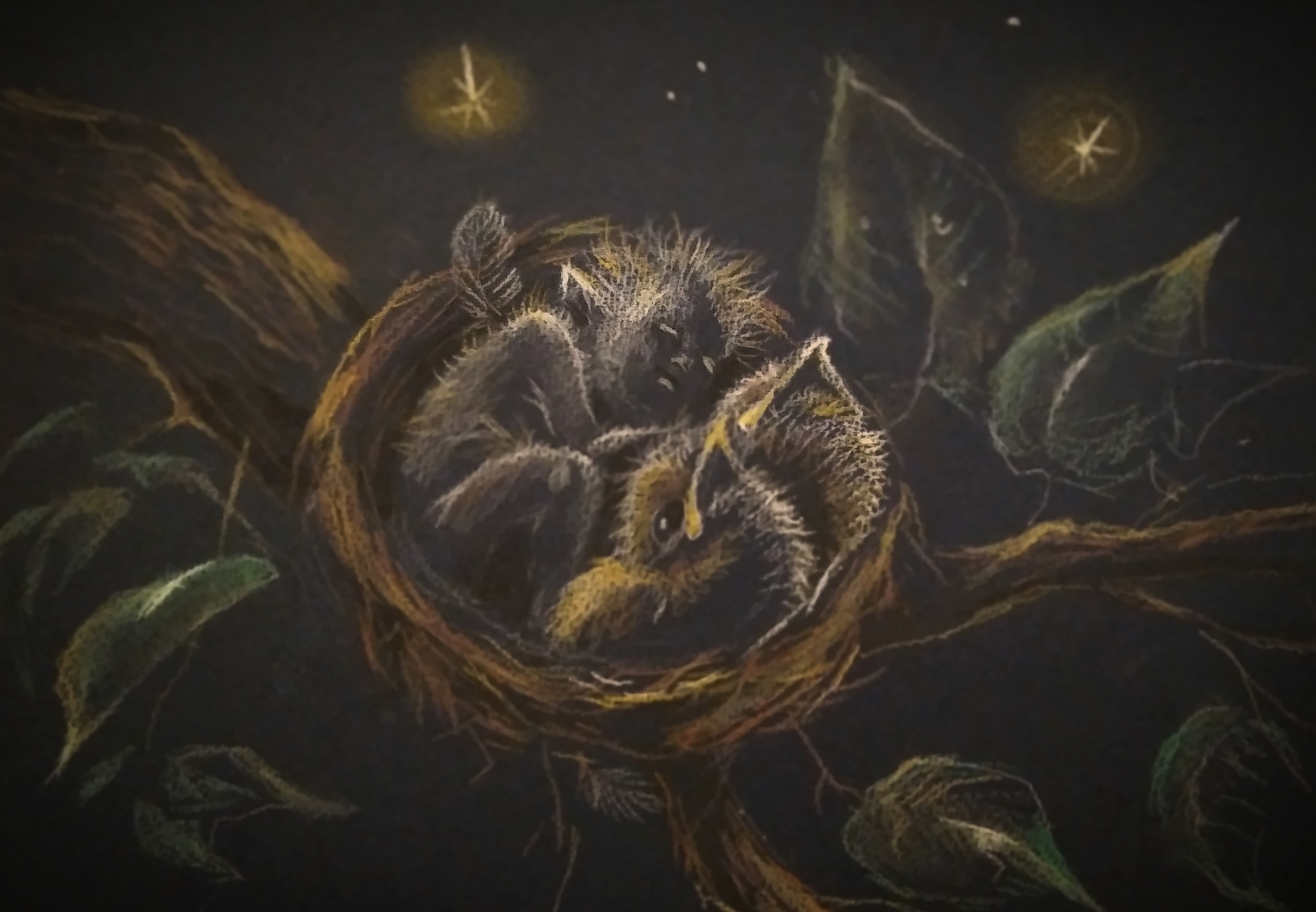 64 trikartonki Кукушонок. Черная бумага, цветные карандаши 1 год назад Кукушонок Птенец Гнездо Где спать Сказки на ночь Арт 1 Ещё 0