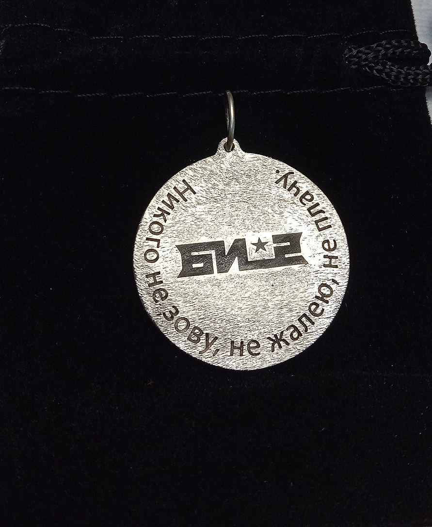 Вот такой кулон получился из серебра с ювелирной эмалью и цитатой из песни "И корабль плывёт"