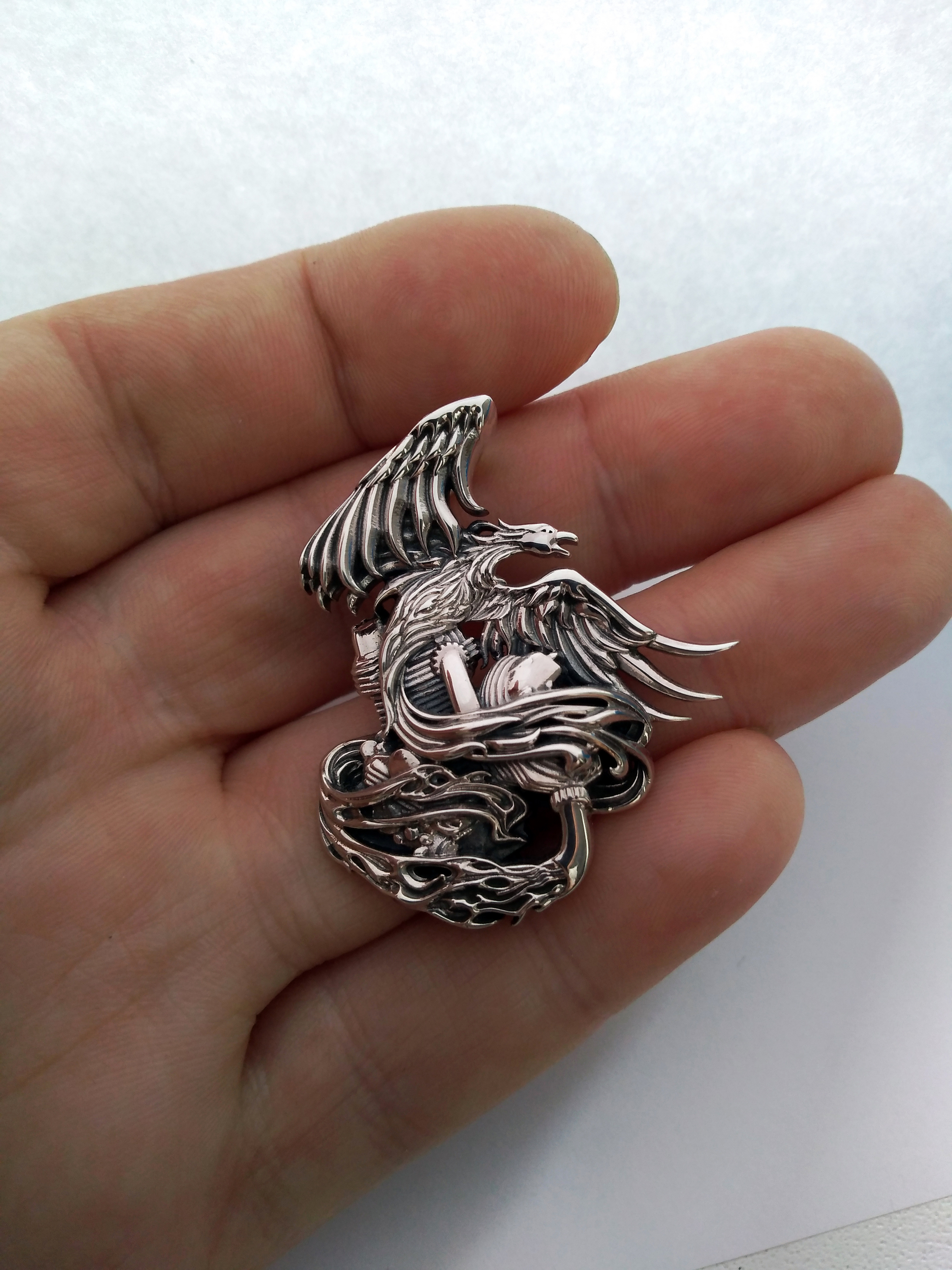 Здравствуйте . Закончил Проект по Логотипу Женского Мотообъединения Blue Bird Stavropol .Материал Серебро 925 пробы . Вес примерно 17 грамм . Размер 40 мм без учёта ушка .