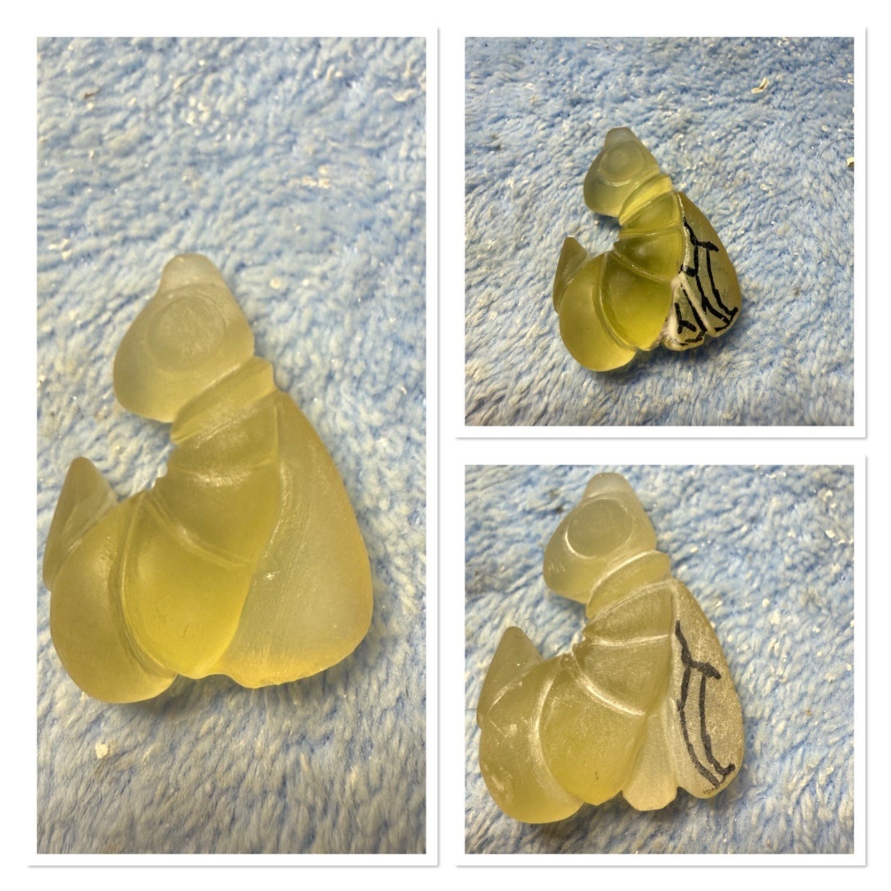 Потом дорабатываю напильником борами до нужной конфигурации и рисую все детали пчелиного тельца, чтобы сориентироваться, что и где должно быть