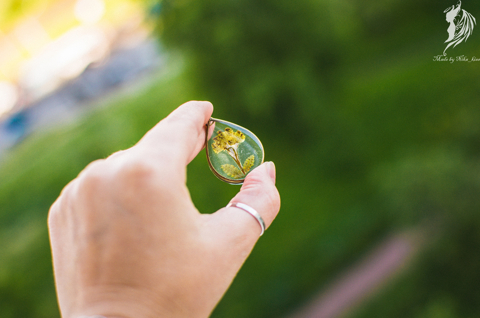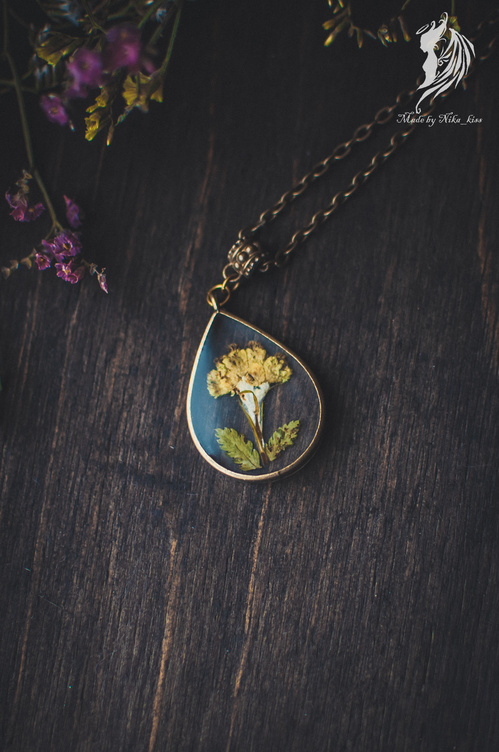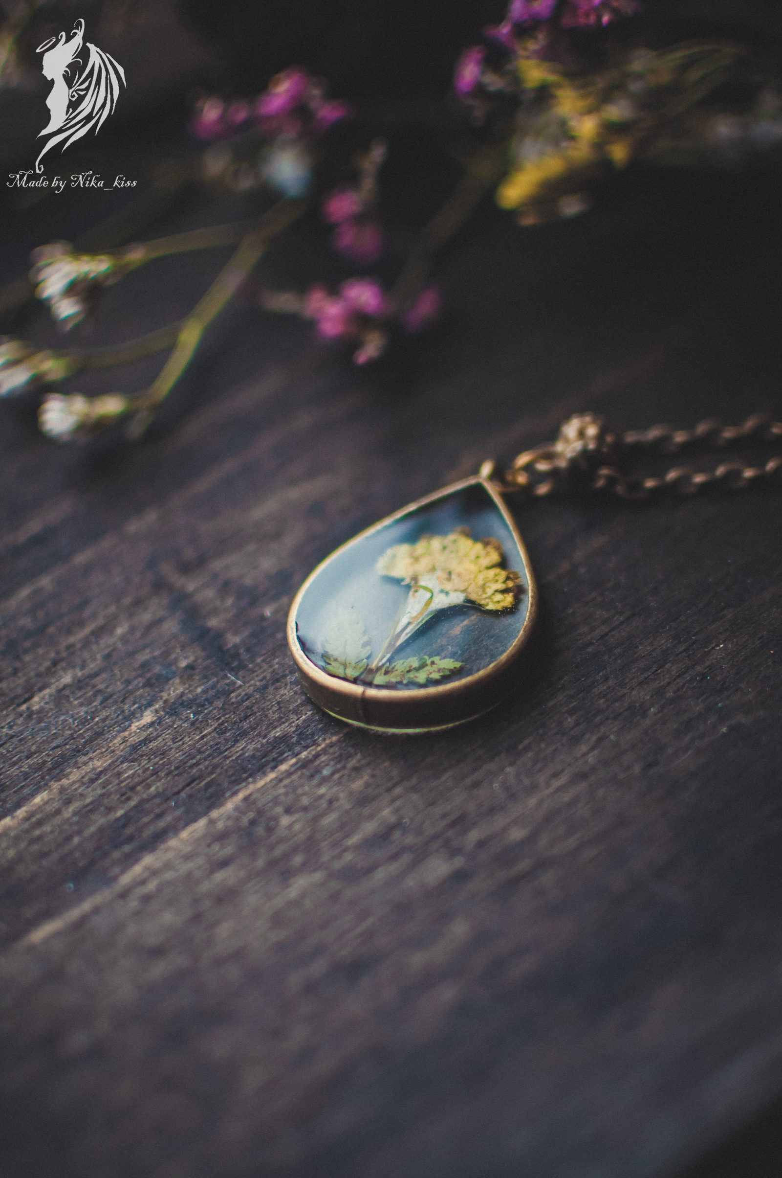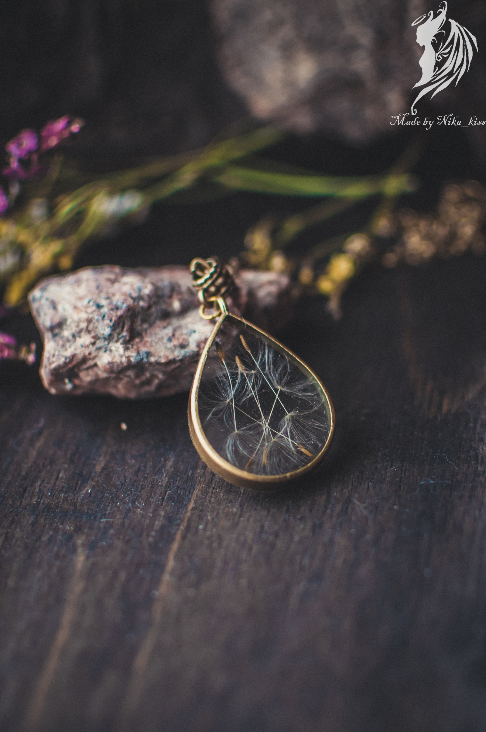 Поэтому показываю вам сразу 2 кулона. Один из них с моим любимым желтым бессмертником, а второй с парашютиками одуванчика (куда же без них?).