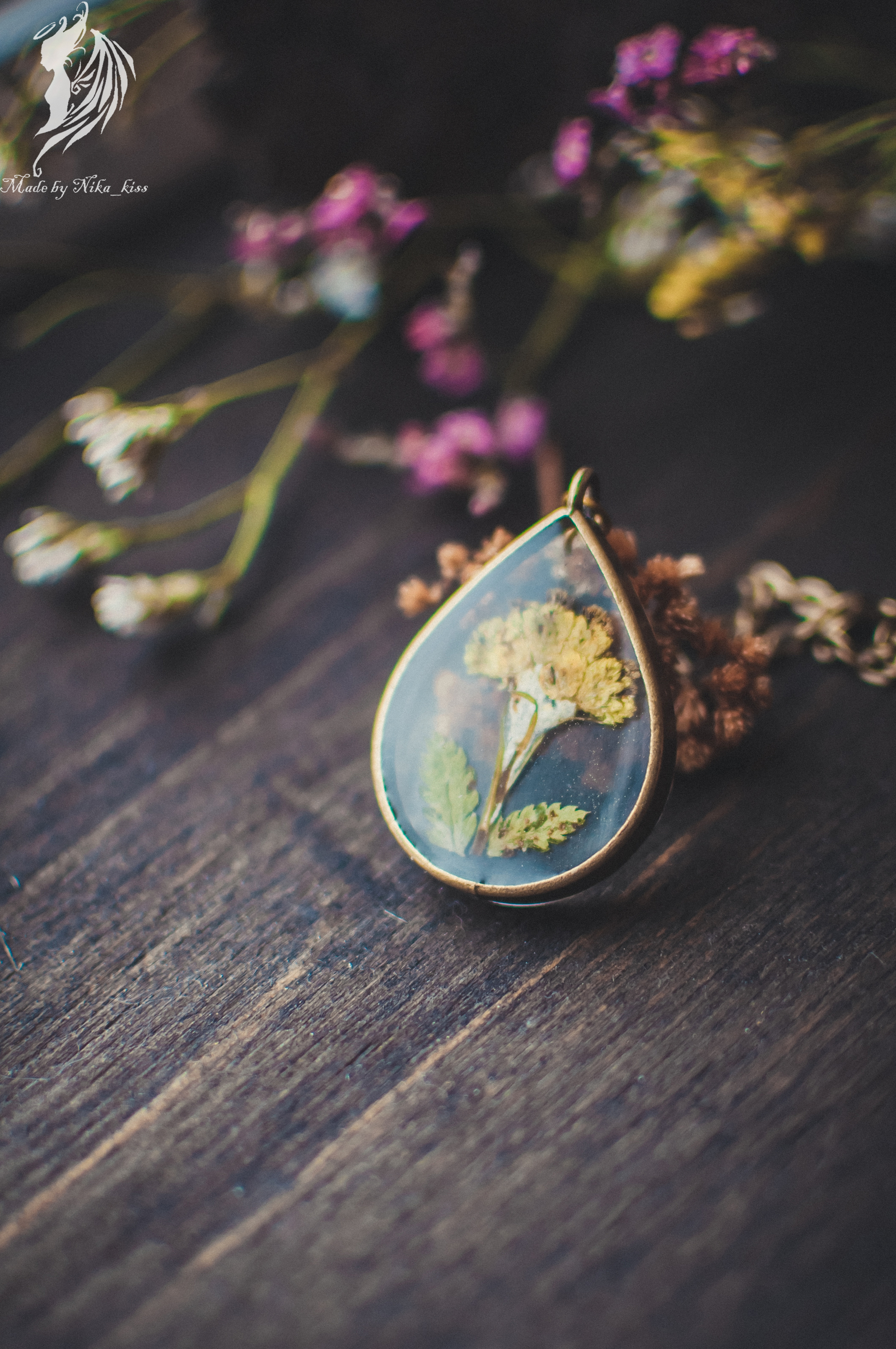Кулоны-камельки из эпоксидной смолы с сухоцветами и парашютиками одуванчика.