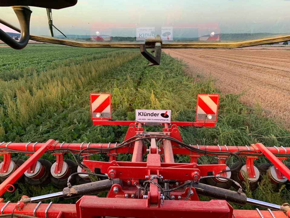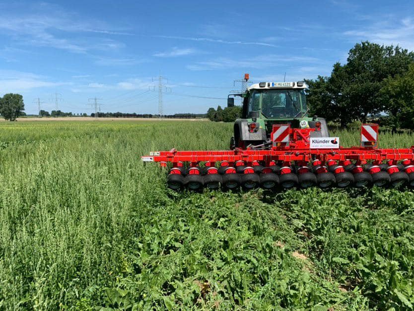 Немецкая компания Klünder создала необычный культиватор для механической обработки посевов сахарной свеклы и других овощных культур. Агрегат предназначен для срезания высокостебельных сорняков, для чего на раме горизонтально установлены колеса со спицами. Вращение колес происходит за счет гидропривода, cкорость работы составляет 4-6 км/ч, а максимально доступная ширина - 9 м.