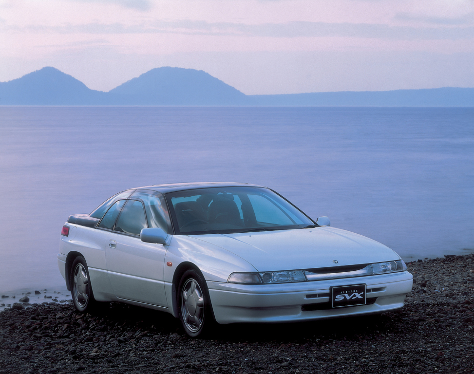 Subaru Alcyone SVX был впервые представлен на 28-м Токийском автосалоне в 1989 году как концепт кар. Итальянский автомобильный дизайнер Джорджетто Джуджаро спроектировал обтекаемый, без резких граней кузов, используя при этом идеи своих предыдущих проектов, таких как Ford Maya и Oldsmobile Inca. В Subaru решили запустить концепт кар в производство, сохранив при этом его самый яркий элемент — необычное окно в окне, назвав его «aircraft-inspired glass-to-glass canopy». Подобное решение было унаследовано от предыдущей модели, Subaru Alcyone XT.