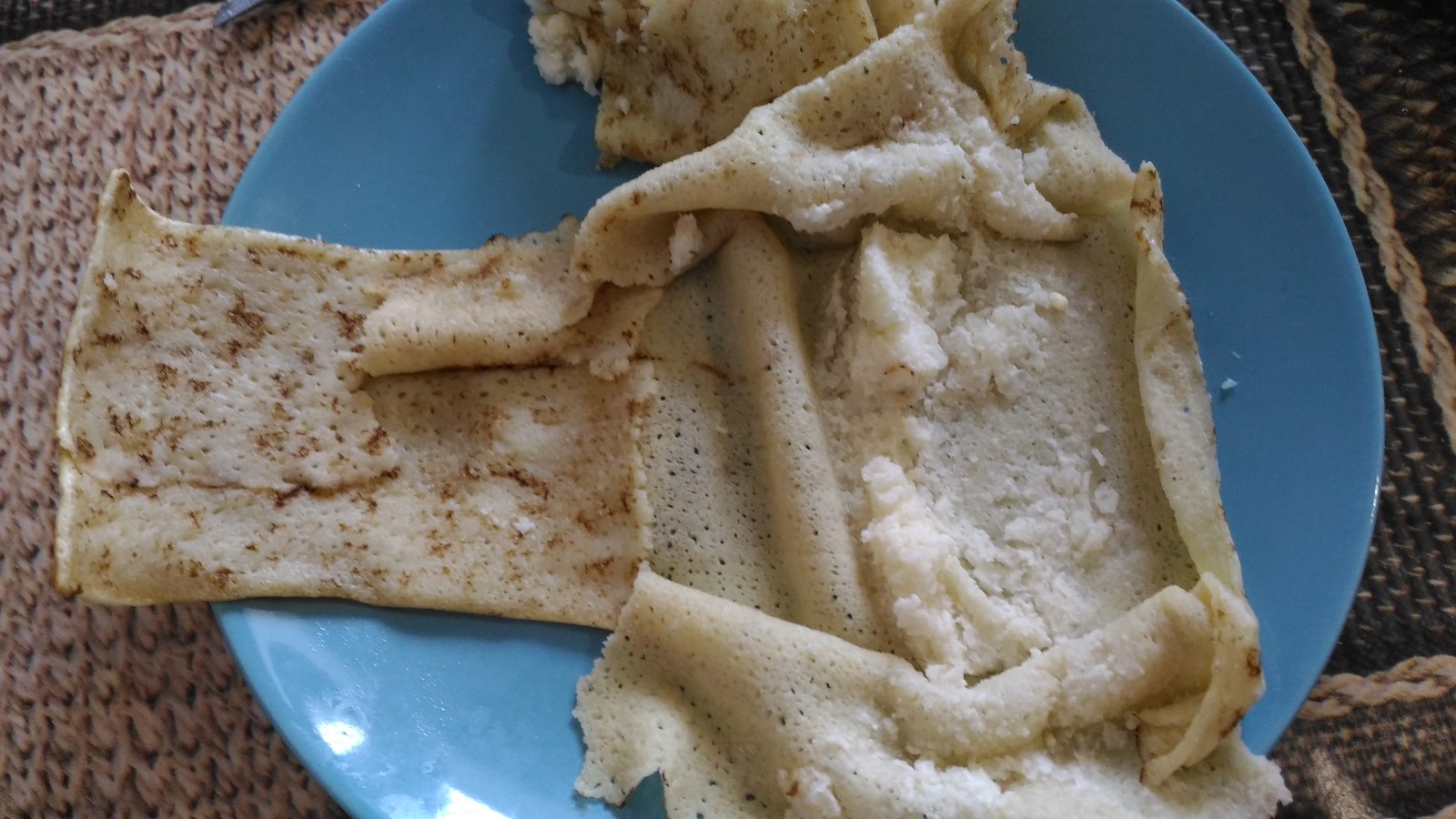 На фото два блинчика: целый - подопытный, раскуроченный - из-за которого захотелось поделиться негодованием. Разворачиваем подопытный блин...
