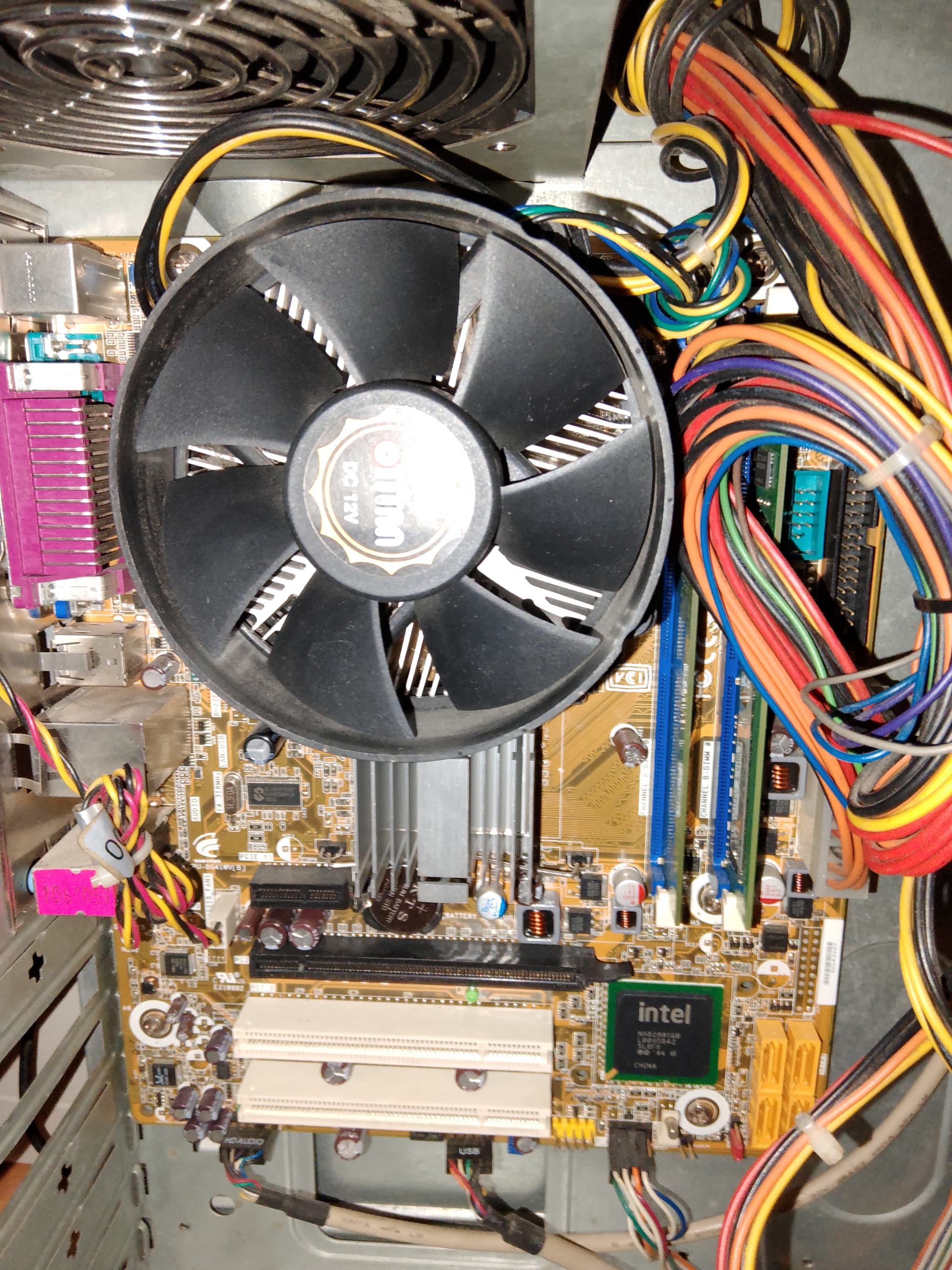 Материнку опознал по биос как Intel Desktop Board DG41WV, 775 сокет с поддержкой DDR3. На бору 4 гига оперативки. Проц Core2Duo E7500, довольно жирный на то время, да и сейчас что-то может.
