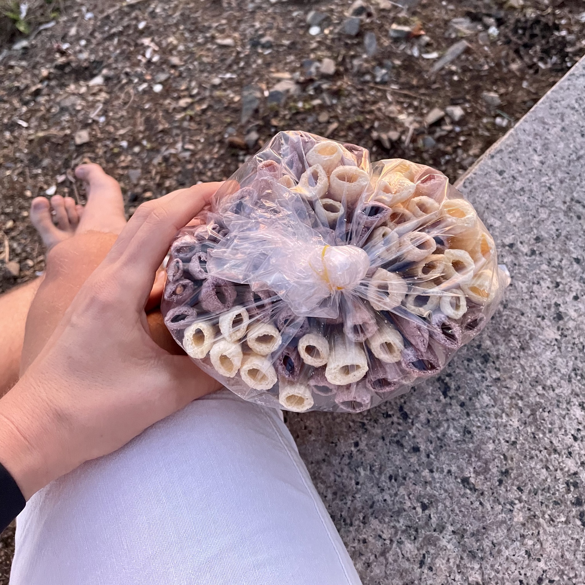 На самом деле это нуклоны (протоны - коричневые, а нейтроны - белые) кукурузные паBAчки, но в глубине нейтронной звезды, чуть ниже внешней коры, на границе с ядром, существуют условия, при которых материя начинает организовываться в странные и похожие на это геометрические формы. Там не привычные молекулы и кристаллы, а особые структуры, образованные нуклонами - нейтронами и протонами. Такие формы возникают из-за противоборства между ядерными силами, которые стараются держать частицы вместе, и кулоновскими силами, которые пытаются их растолкать. На этих плотностях около 10¹⁴ грамм на сантиметр в кубе материя выстраивается в упорядоченные фазы, которые напоминают макароны. Поэтому их и назвали ядерные макароны (nuclear pasta).