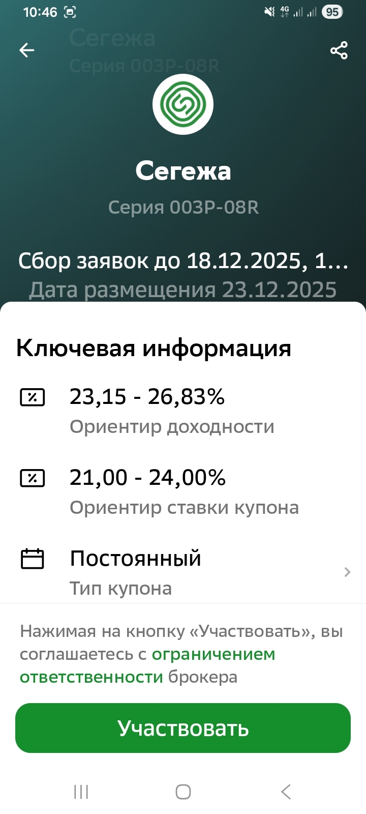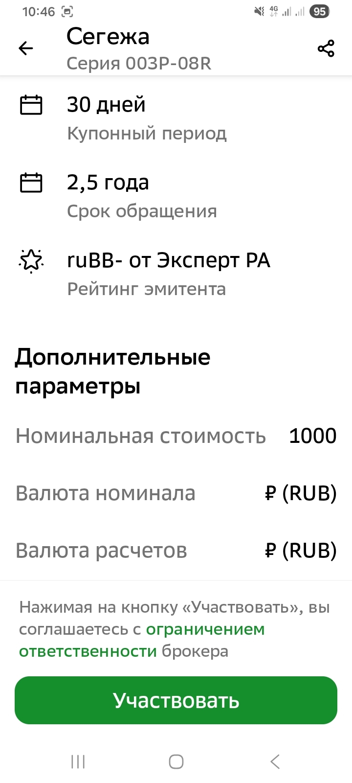 3. Куплена, точнее через 5 часов сработает покупочка на первичном размещении, прекрасная облига Сегежи, из сферы деревообработки, бум пиломатериалы грызть. На 2,5 года поток денег от нее.