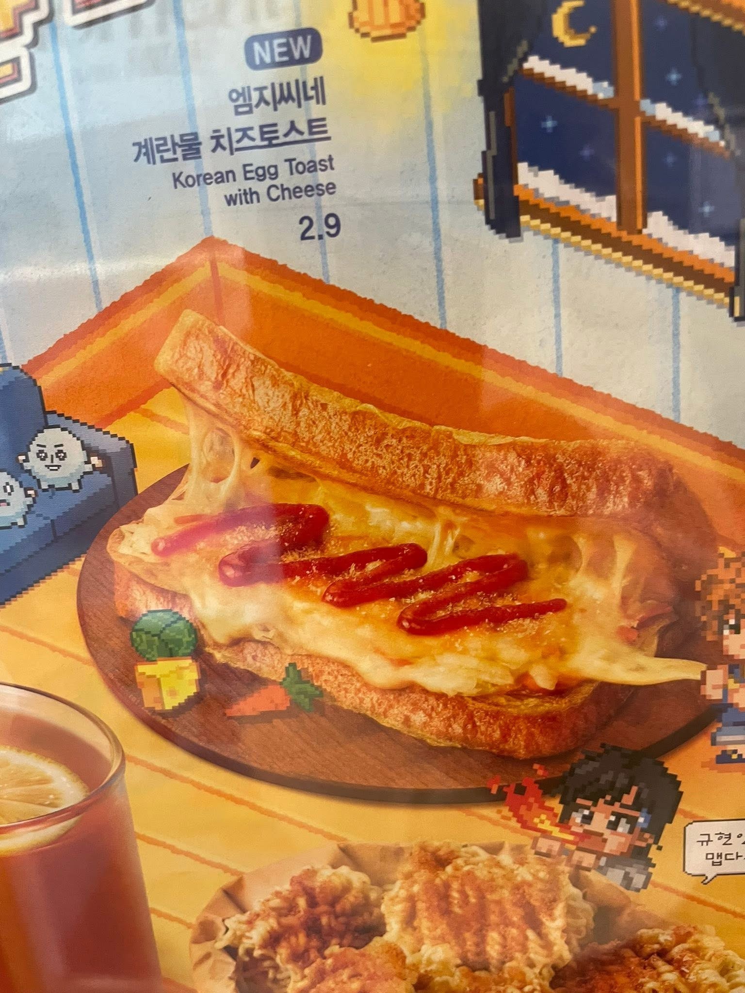 Зы: подошла-таки к менеджеру, поинтересовалась, где яйцо. Она говорит: не знаю. Нам присылают такие нарезанные уже ломти, мы их просто в духовке разогреваем, и всё! Я ей показываю: но яйца-то нет! Вместе какое-то время искали яйцо. Не нашли. Она пробормотала: «извините» и сказала, что доложит начальству. Но это без разницы: не изменится ничего. И корейский тост с яйцом и сыром так и останется по факту корейским тостом с сыром, но без яйца. 😏