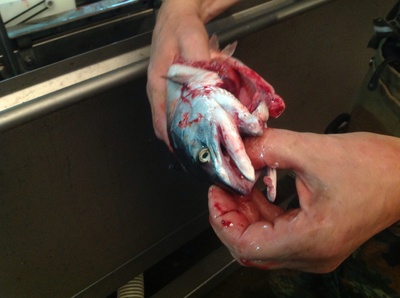 Самый сложный и нудный процесс. Нужно аккуратно отделить зернышки икры от пленок. Икра довольно таки мягкая и ее легко раздавить. Поэтому собираем всю свою аккуратность и тщательно, долго и нудно, фактически по икринке отделяем зернышки. Кстати говоря, не вздумайте промыть икру под краном, не знаю причин, но икра не переносит контактов с пресной водой. икра становится жесткой и противного серого цвета.