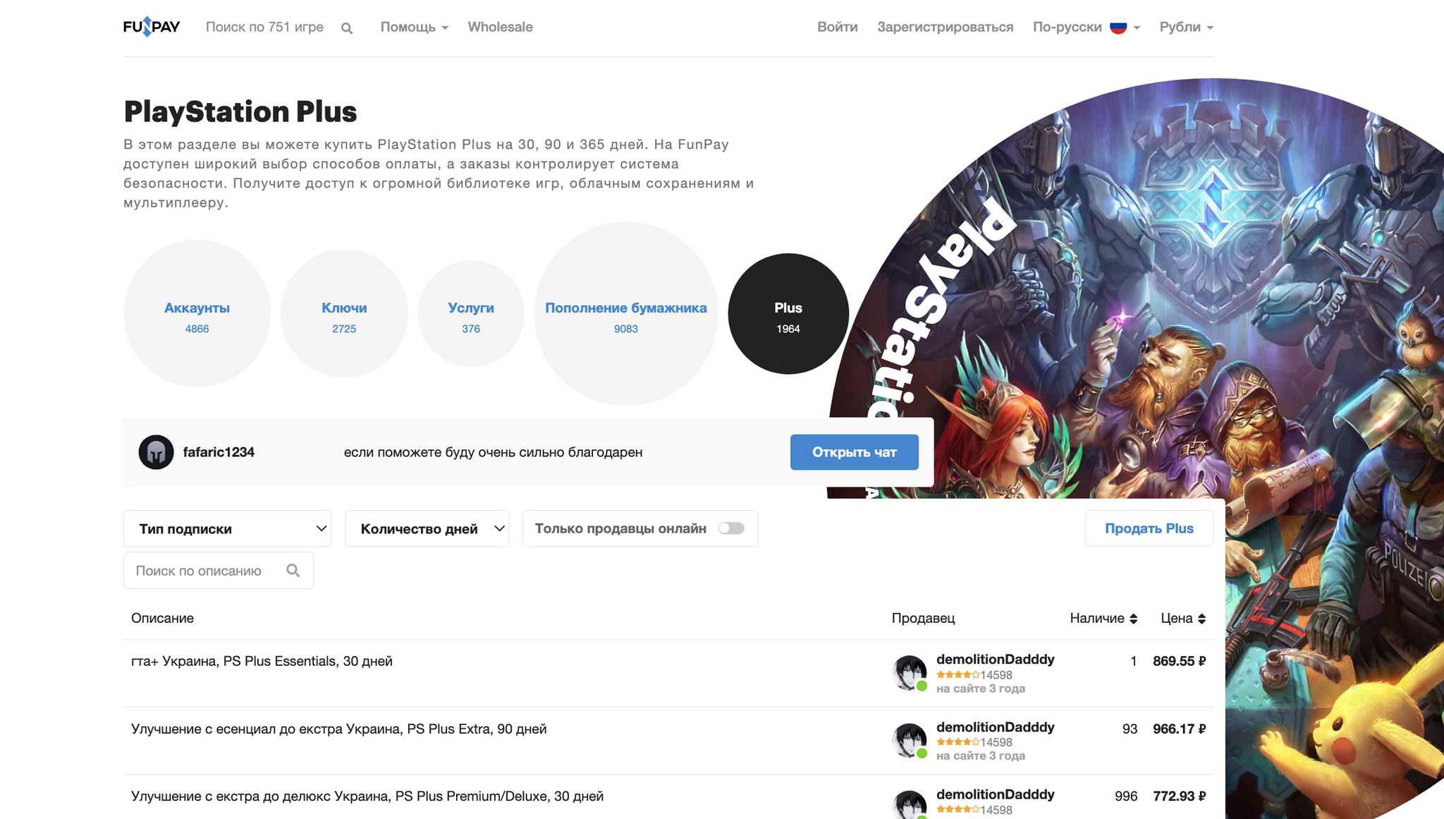 Если нужно купить подписку PlayStation Plus выгодно, FunPay — отличное место для поиска лучшей цены в реальном времени.