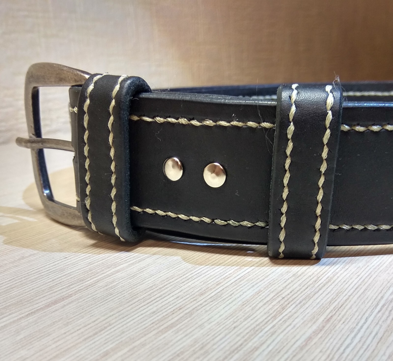 Итак – купюродержатель. Сам таким девайсом не пользуюсь, но есть люди, которым такая форма хранения денежных купюр очень даже нравиться, поэтому решил сделать второй свой купюродержатель, попутно осваивая тонкости кризеровки. Использована итальянская кожа растительного дубления со сквозным крашением и пул-ап эффектом, толщиной 1,5-1,6 мм. Размеры по раскрою 23*8,5 см. Сделал два внутренних кармана под карты с вырезанным углом, чтобы их проще было доставать. Урезы отполированы камедью. Под шов использовал косой пробойник с шагом 3,85мм. Нитка круглая, толщиной 0,45мм.