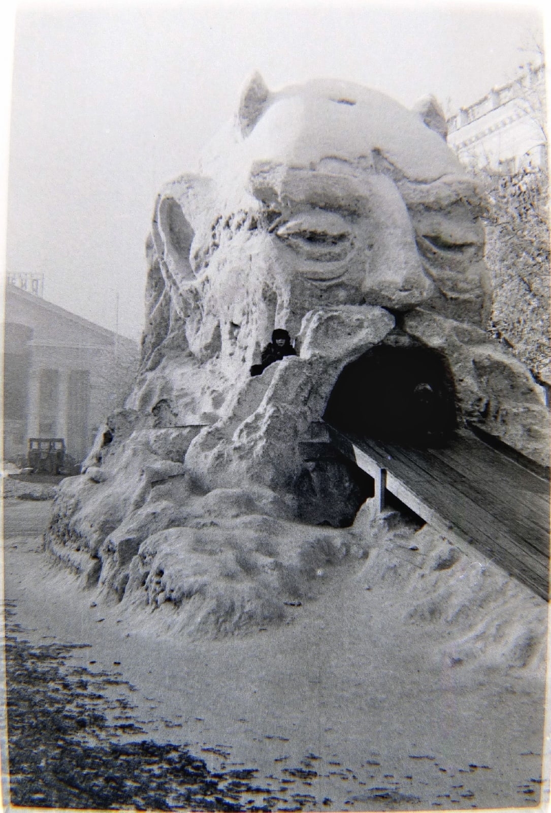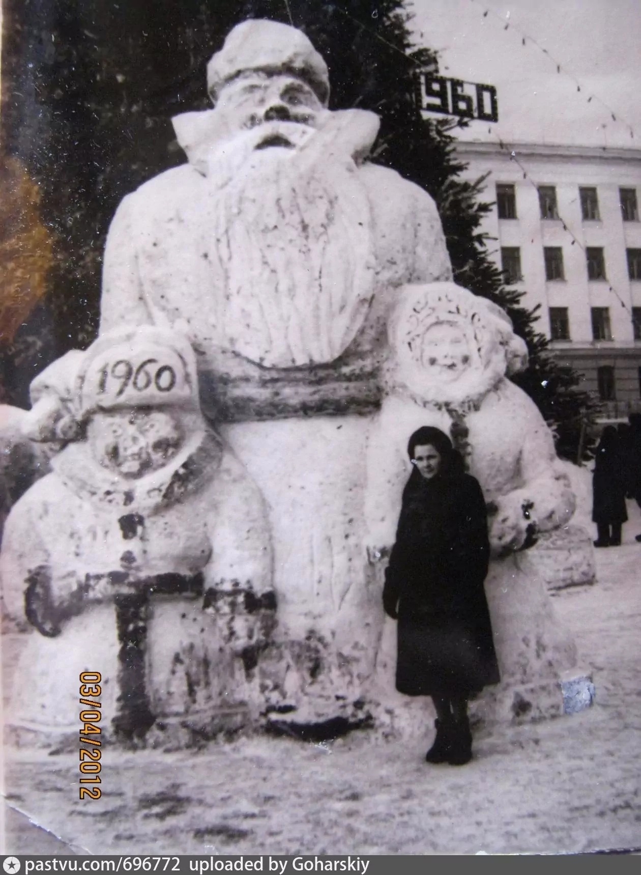 Следующее фото ниже. В шестидесятые годы начинается изготовление все более и более сложных и больших фигур различных персонажей из снега. Подчас, довольно криповых. Пишут что еще часто делали из грязного снега.
