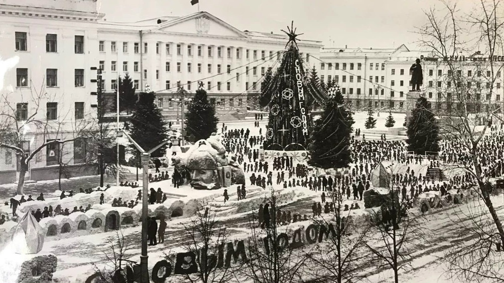 К концу пятидесятых годов главная елка города Кургана уже переехала на современное место: слева от городской администрации. Елка с каждым годом становилась все более и более красивой и сложной. Обратите внимание на то что на самой елке делали украшение в виде наступающего года. Эта традиция сохранялась минимум до 1964 года.