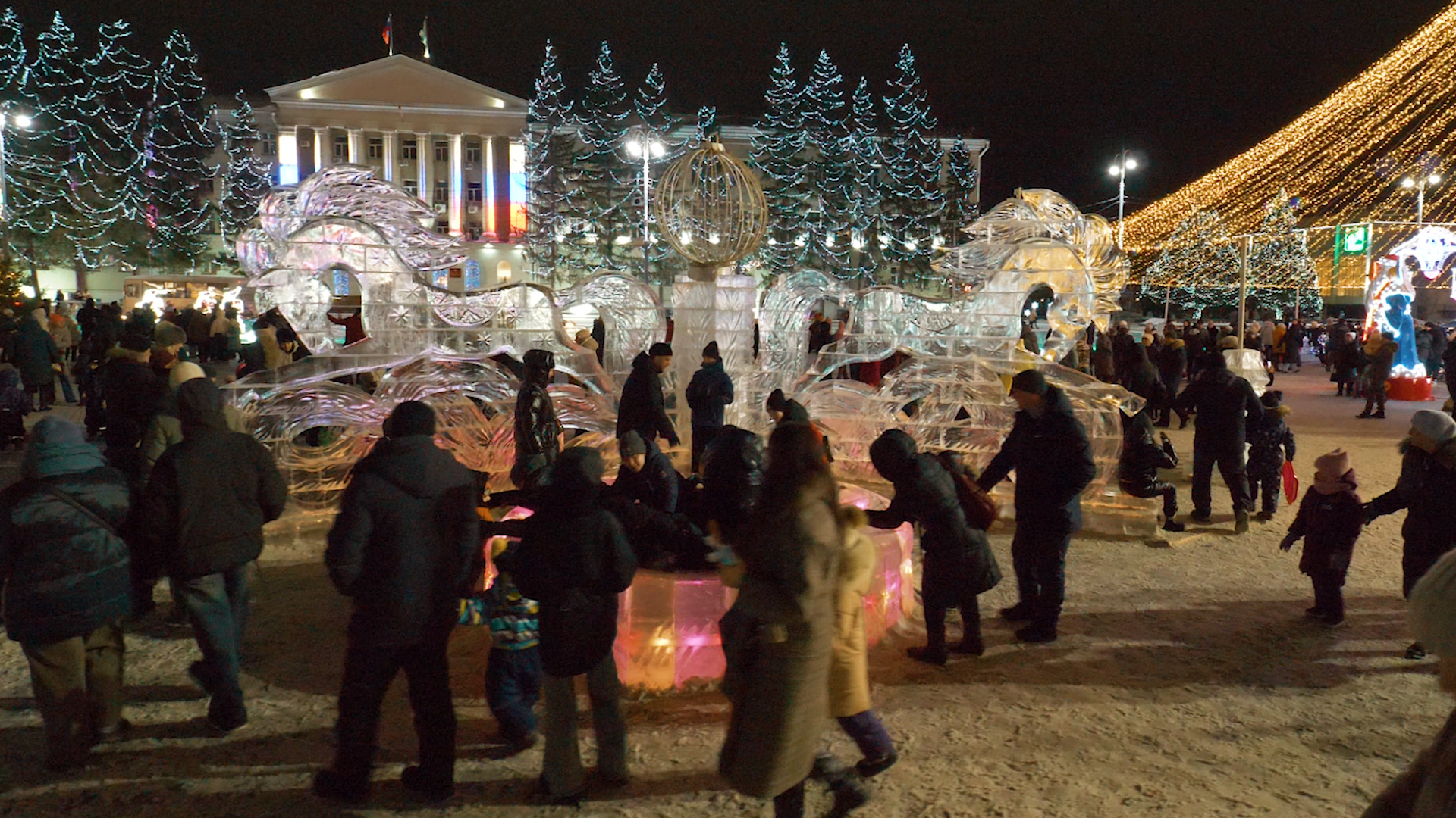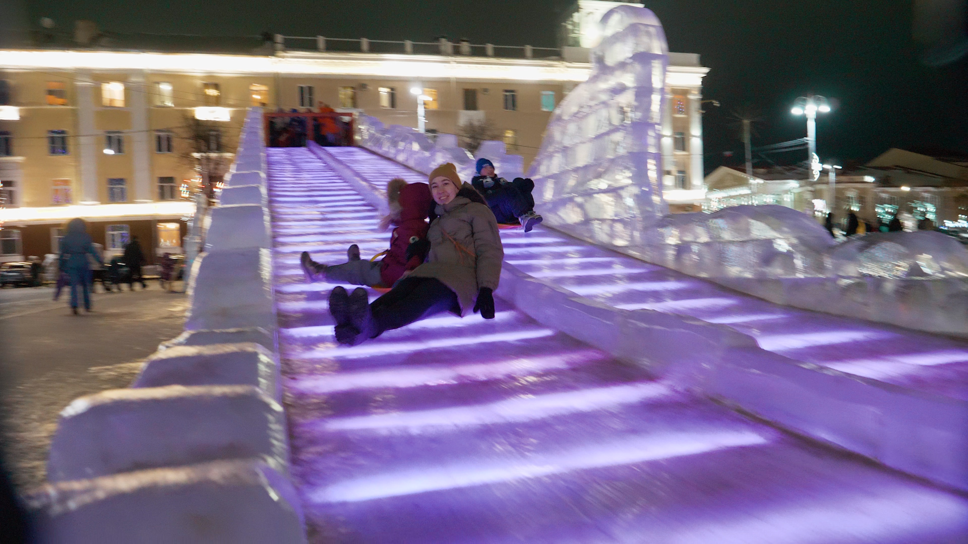 Это горка на центральной площади. Уже полностью безопасная и со светодиодной подсветкой. Топ. Единственное - большие очереди.
