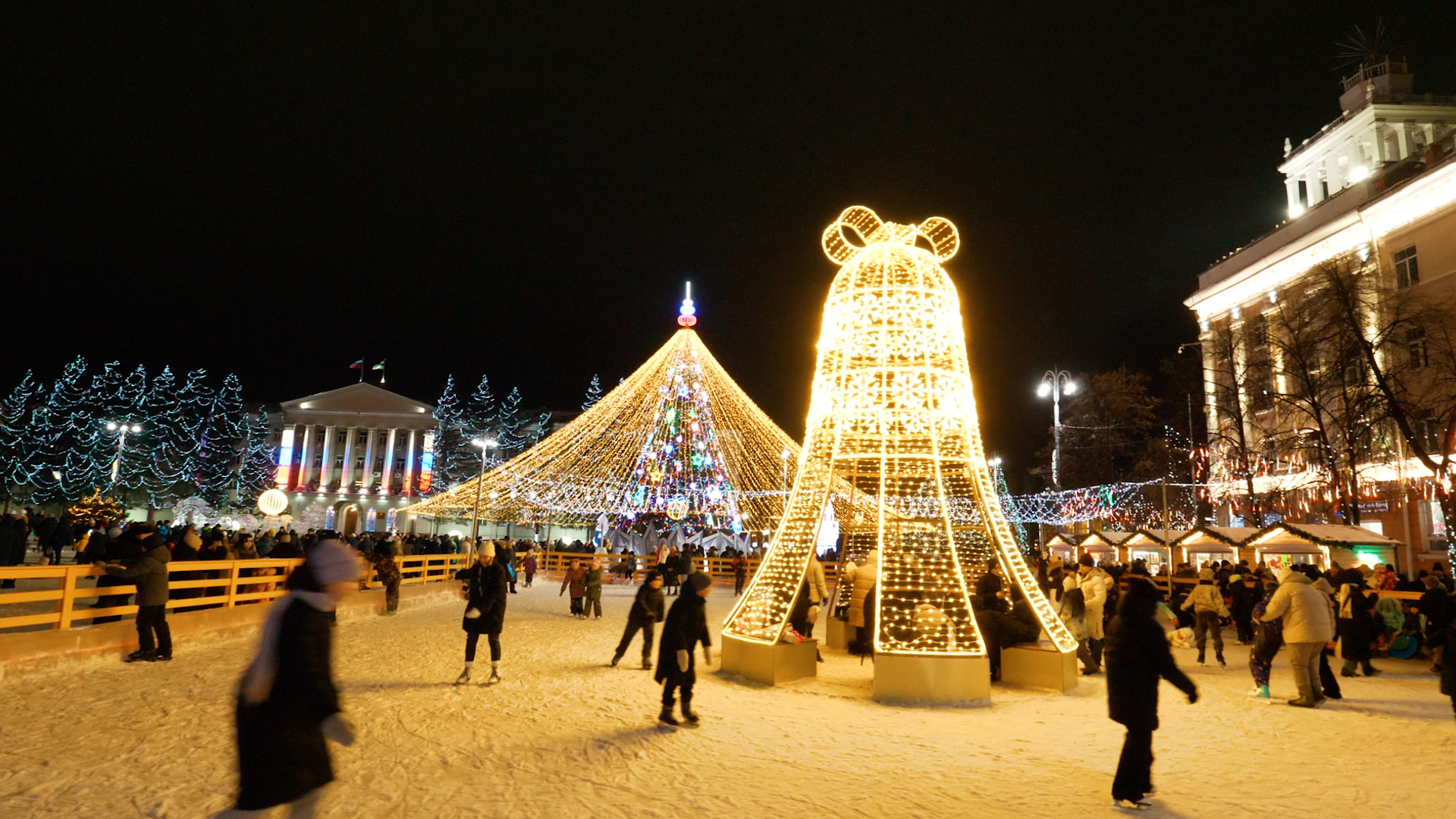 А это каток на центральной площади. Опять же не каток у ГУМа на красной по масштабам, но и бюджет у города поменьше, как мы помним)