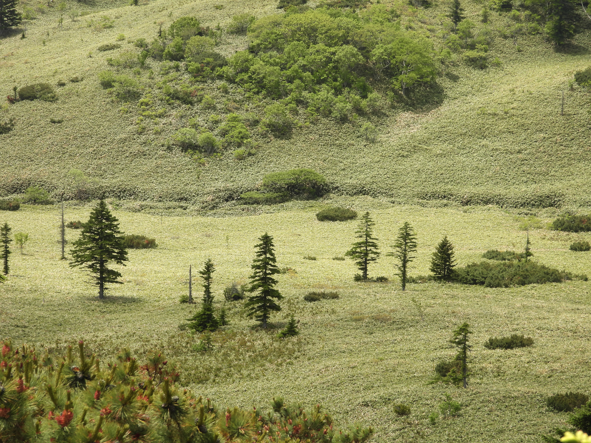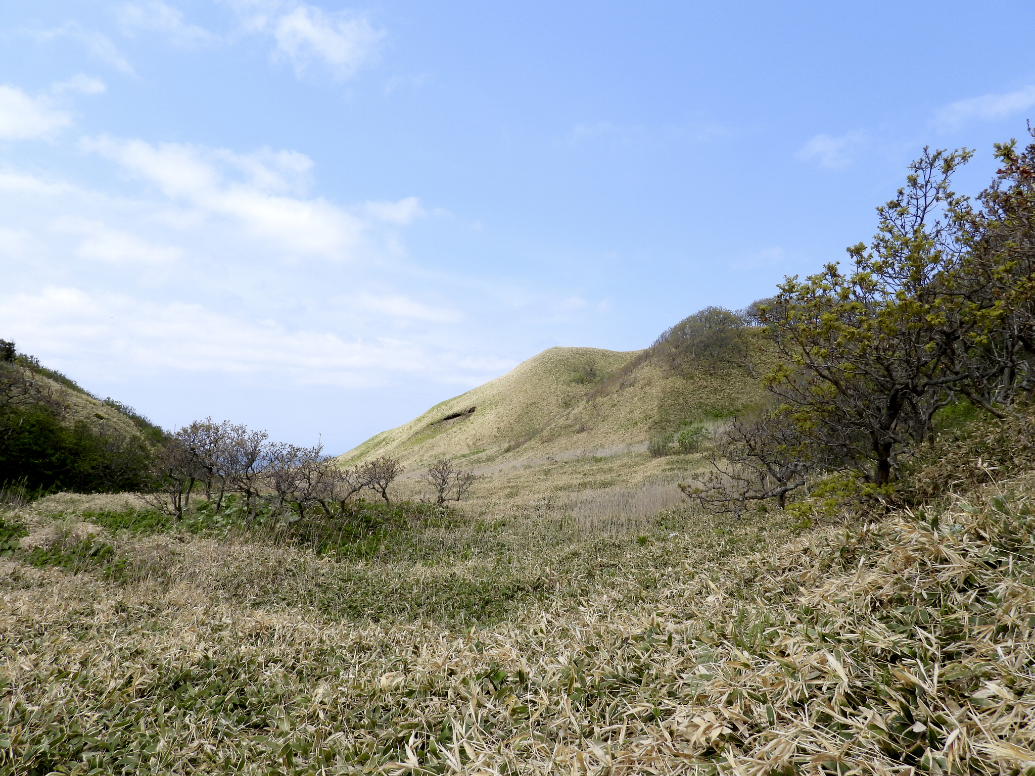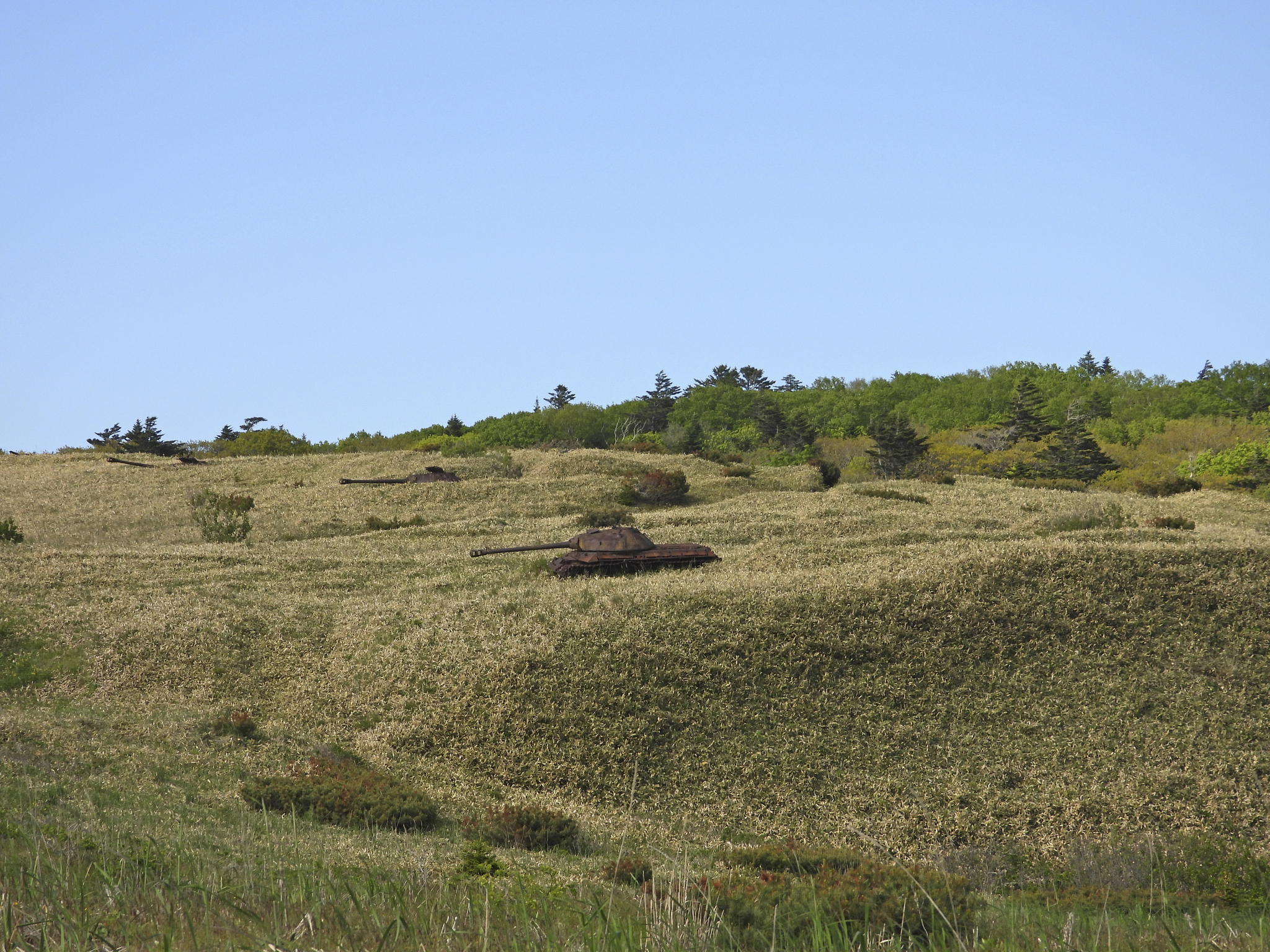 В плотных, но невысоких зарослях курильского бамбука утопают заброшенные танки. Остров Кунашир. Фото Л. Головневой.