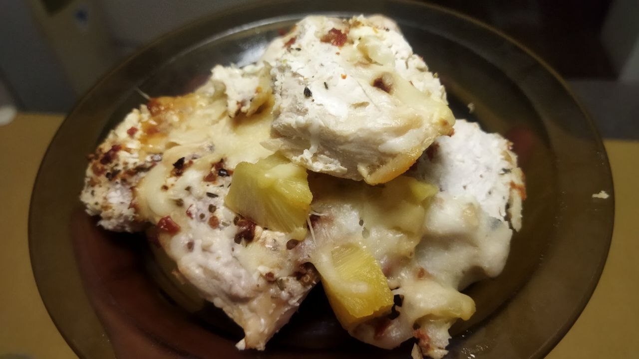 Куриное филе с ананасами в духовке