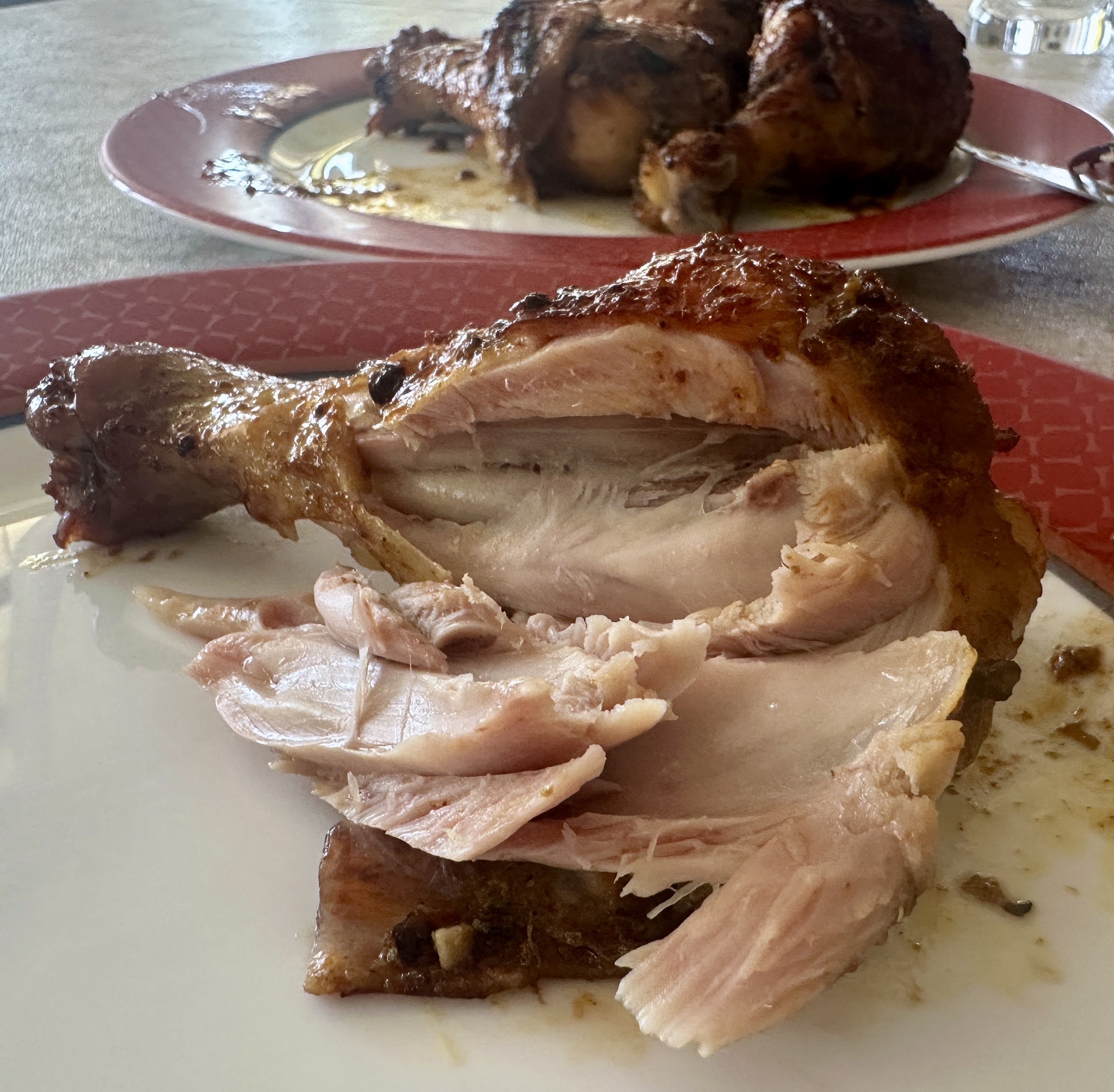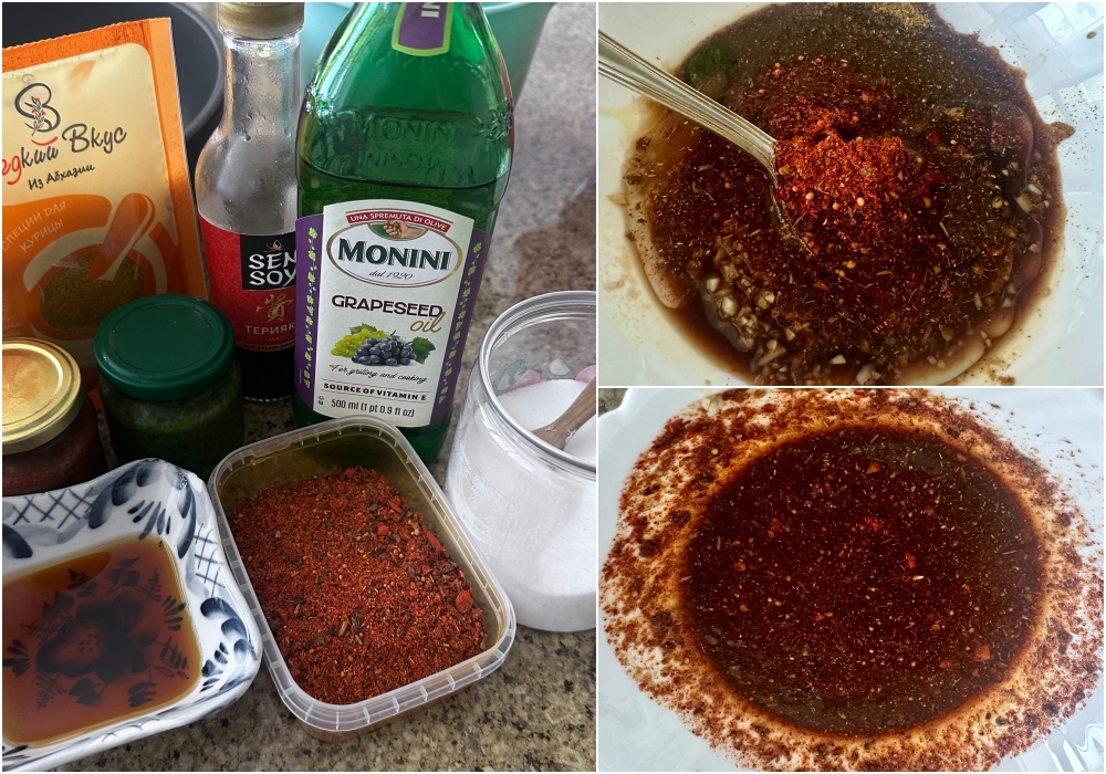 Кожа хрустящая, впитавшая в себя все прелести составляющих маринада.