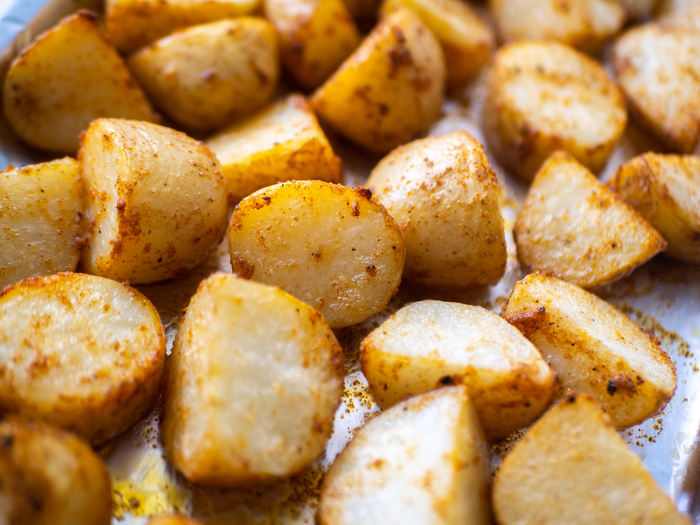 Ну а подавал я с запеченным молодым картофелем и салатом микс с томатами и заправкой из дижонской горчицы с оливковым маслом и чесноком.