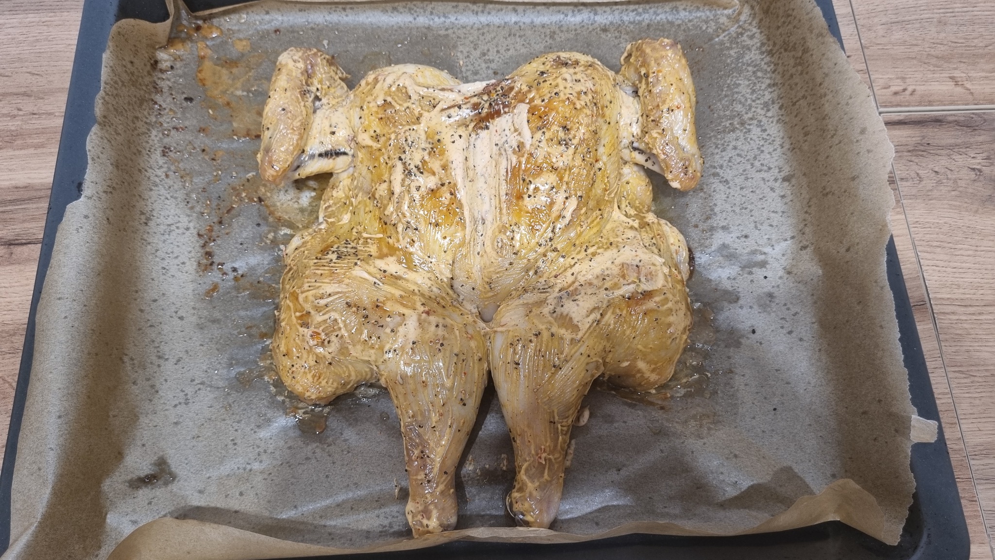 Грудка получилась как надо. Остальные части. соответственно, еще сочнее. Жаль, что с перцем немного не угадал. Надо бы поменьше.