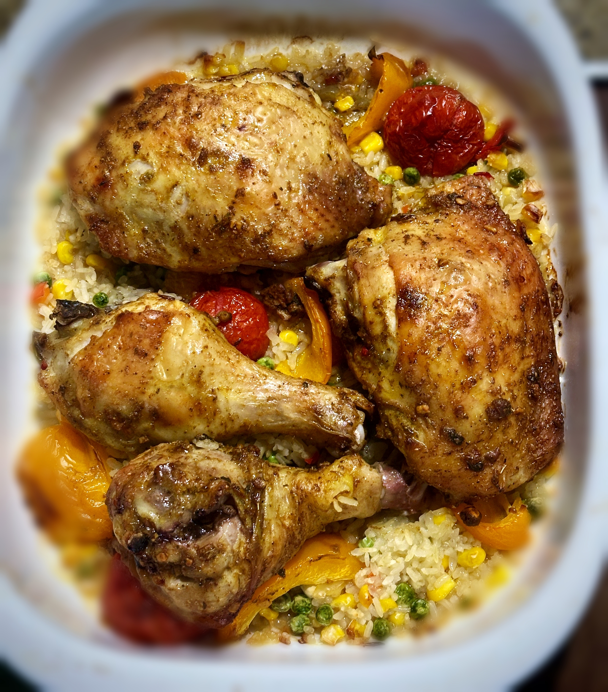 Совершенно ничего нового, но очень просто и относительно быстро. Быстро — это я про трудозатраты во временном исчислении при подготовке. Остальное время работает духовка. И от того как она работает будет зависеть "длинно" или "коротко". Ну и от курицы конечно.