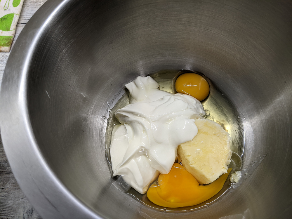 Пора приступать к тесту. Тесто, паче чаяний, ВВП внезапно описал в стиле «замесить и нарубить» (кто не знает, он, как правило, поясняет кучу нюансов по ходу, но тут нет). Так что состав продуктов беру по ВВП, а технологию - по сырниковскому варианту (у него очень похожее пресное сдобное тесто, только без яиц и чуть другая пропорция).