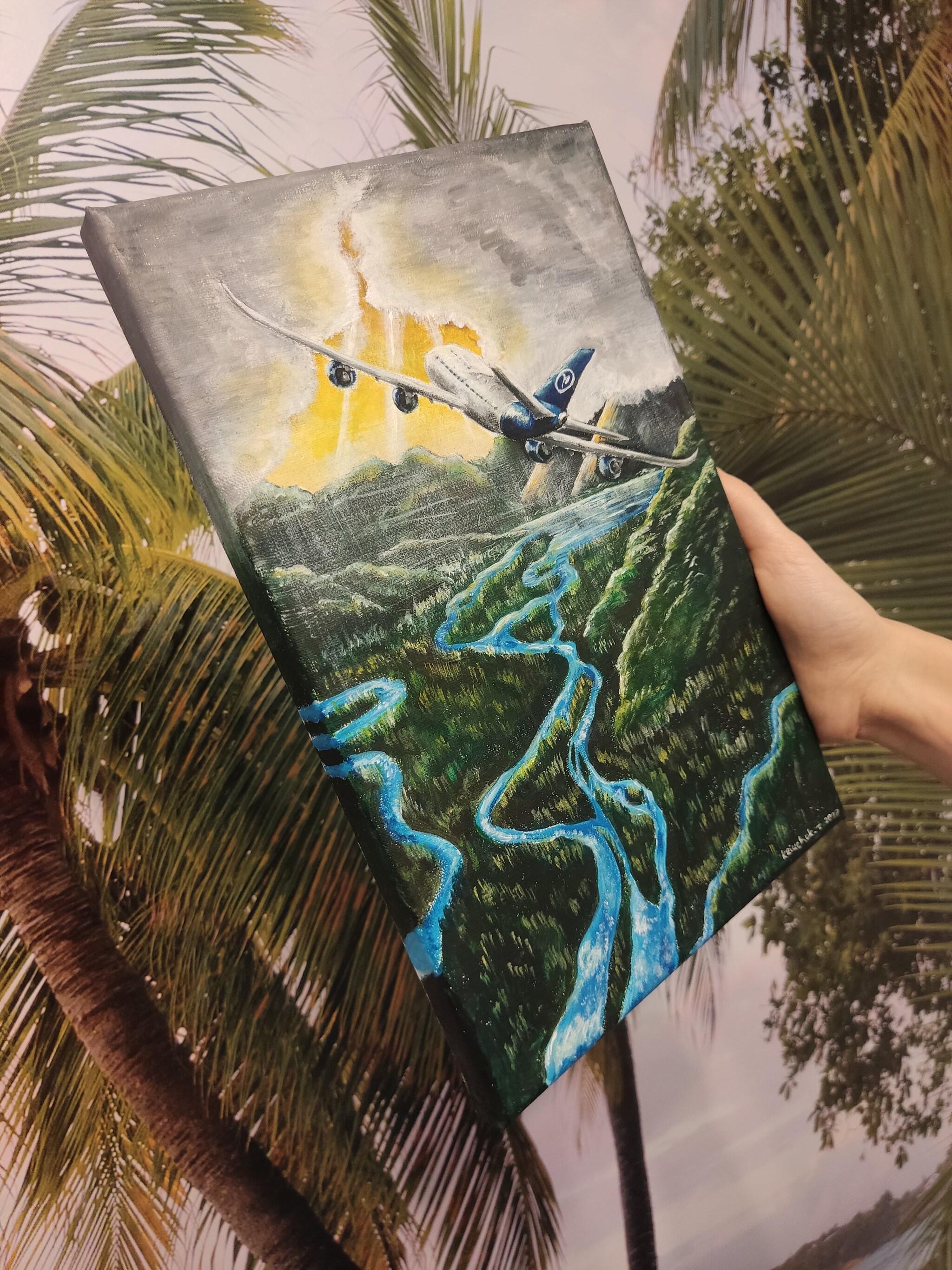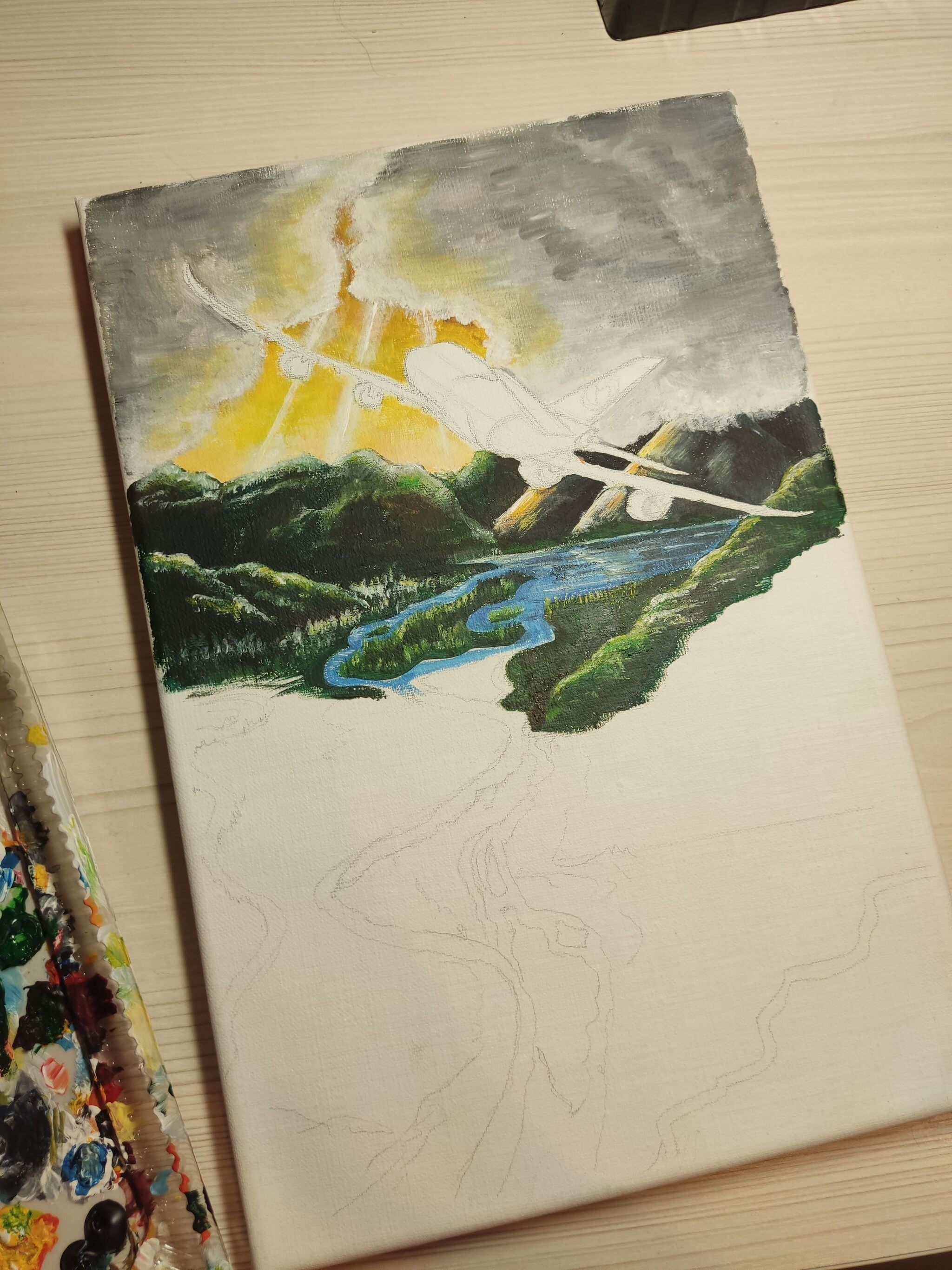 Увлекаюсь гражданской авиацией с 2017 года. Примерно с того момента рисую самолёты разными техниками. На данной картине - Boeing 747 авиакомпании Lufthansa ✈️