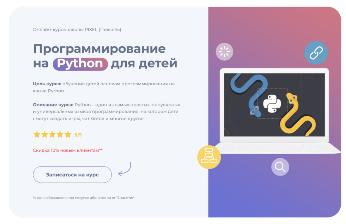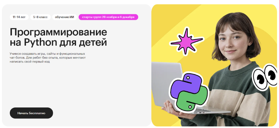 Онлайн-курсы «Питона» для школьников, не обладающих опытом в написании кода