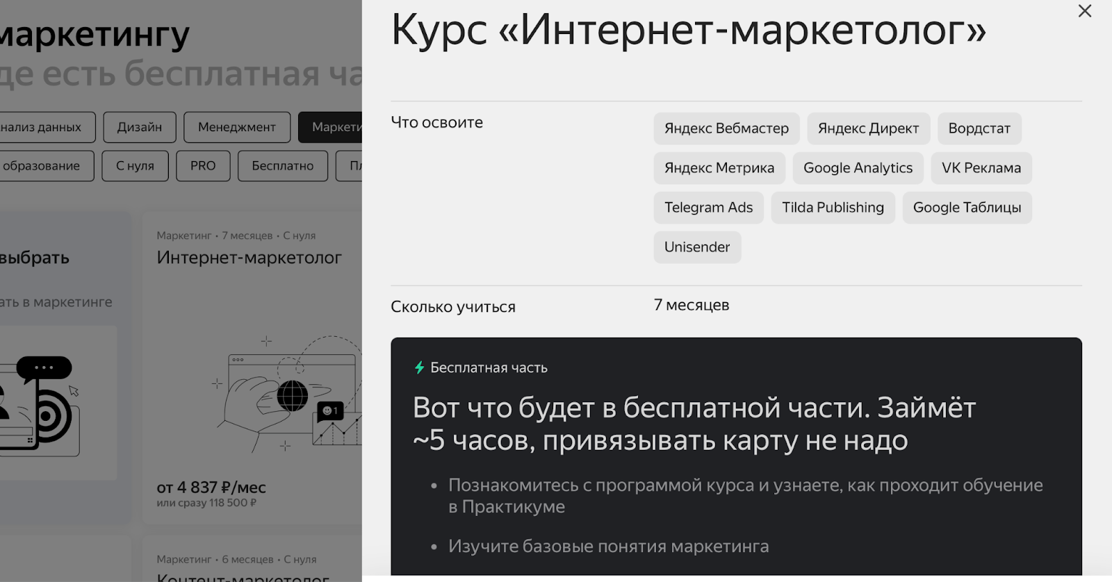«Курс Интернет-маркетолог» (Яндекс Практикум)