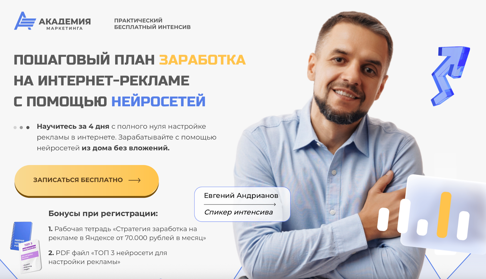 Интенсив «Заработок на рекламе с помощью нейросетей» (Академия маркетинга)