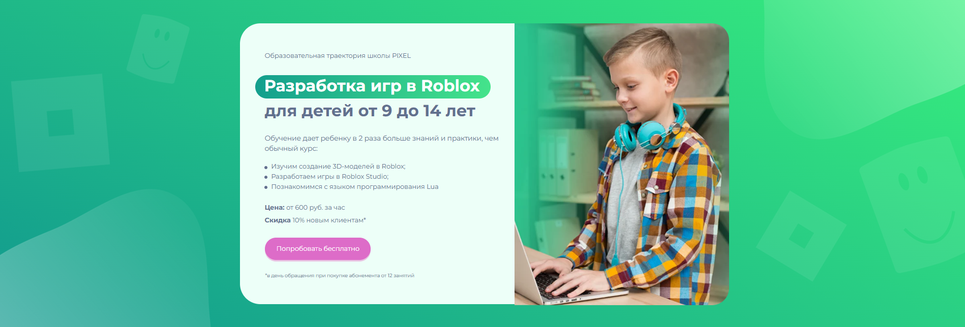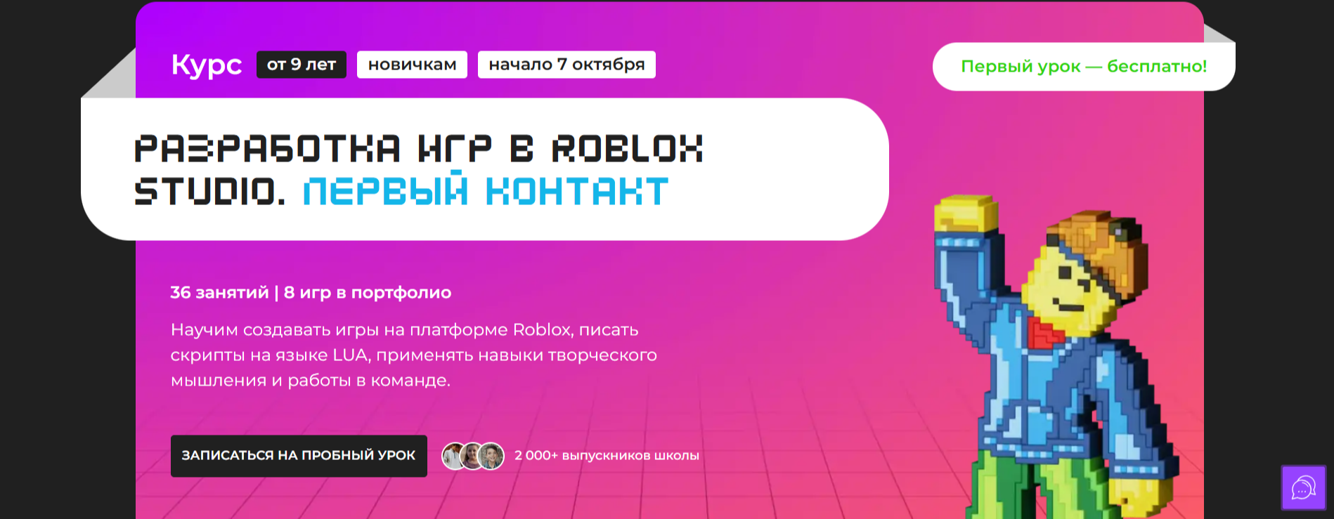 Требования к возрасту: запись на курс Роблокса для детей онлайн возможна с 9 лет.