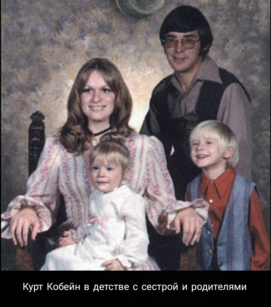 Курт Дональд Кобейн родился 20 февраля 1967 года в Абердине, неподалеку от Сиэтла. Родители будущей знаменитости — Дональд Лиланд Кобейн, работавший механиком на станции техобслуживания, и Венди Элизабет Кобейн (Фрейндерберг), которая одно время была воспитательницей, а затем — официанткой в баре. Помимо матери и отца мальчика опекали другие родственники. Спустя 3 года после появления Курта в семье Кобейнов родилась девочка Кимберли.