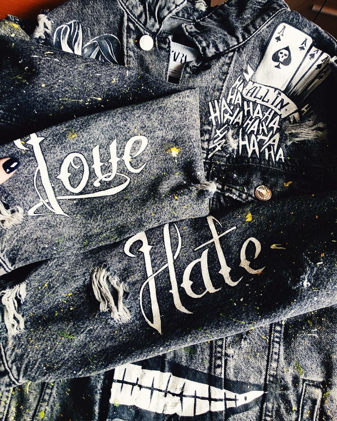 8 tgalata Куртка Джокер 6 лет назад Роспись джинсовки акрилом [моё] Роспись по ткани Джокер Отряд самоубийц Джинсовка Акрил Длиннопост