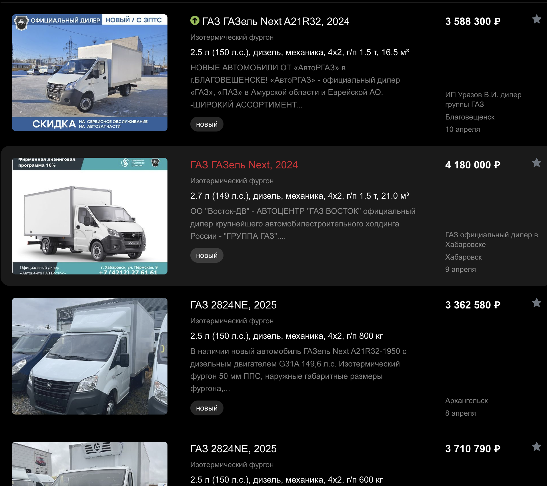 А по поводу ближайших конкурентов. Такие берут для бизнеса на развозку. Газель Некст стоит от 3,3 до 4 млн рублей.