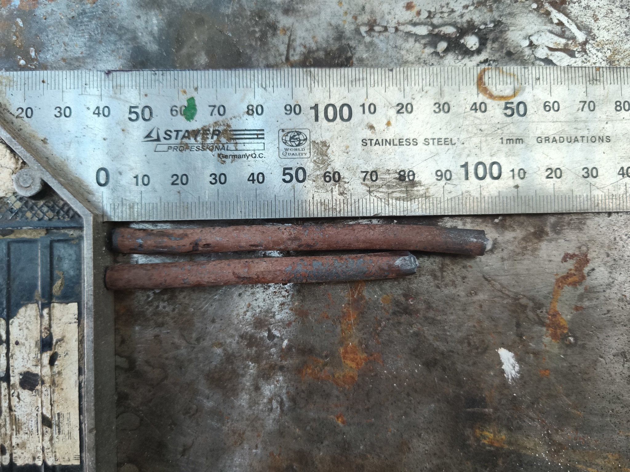 С помощью такой вот гильотины изолирую часть материала, а при оттягивании конца получаю трещину в тонком месте. Заготовка в утиль - начинаю делать шпильку заново)