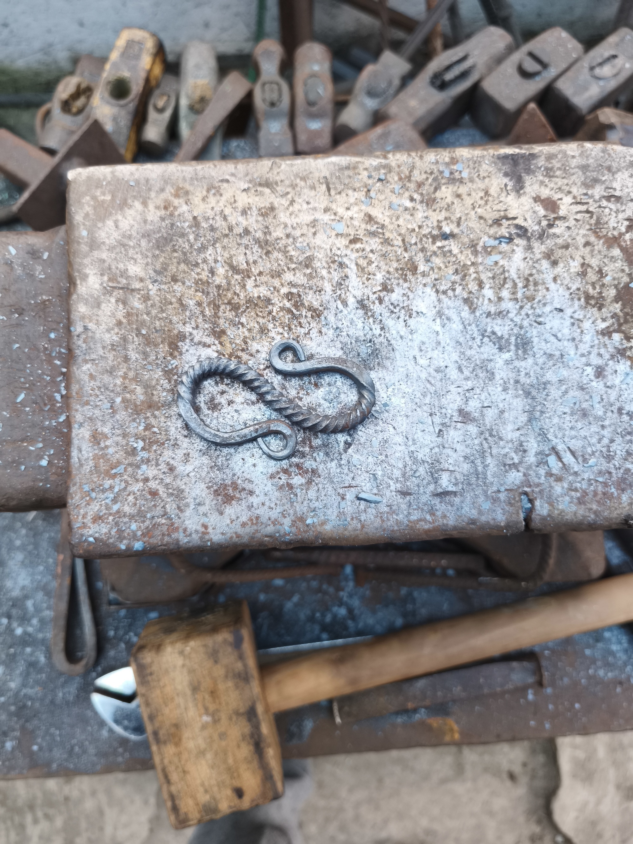 Пока что займусь формированием восьмёрки. Лёгким молотком формирую завитки на концах заготовки.