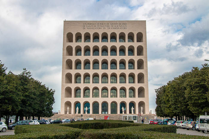 Дворец итальянской цивилизации - символ Фашистской архитектуры, вдохновленный 2000-летним римским Колизеем
