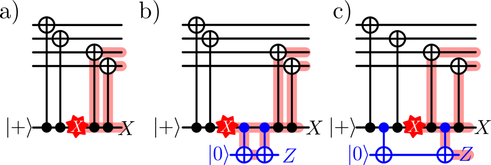 В ходе исследования было показано, что введение дополнительного флагового кубита позволяет выявлять коррелированные ошибки, возникающие при Pauli-XX-измерении, путем коммутации одной операции через вторую CXCX, что приводит к регистрации ошибки только на флаговом кубите и позволяет избежать ее распространения на кубиты данных.