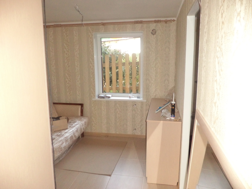 Обои светлые с имитацией полос визуально поднимает поток и пространство не скрадывается. орнамент на обоях в реальности не виден-они просто выпуклые(гофрированные). пол светлый и плитка широкая чтобы визуально увеличить объем комнаты. Шторы и стол на кухне - это временный вариант. .Пока не нашли желаемое.стол предполагается круглый стеклянный. Диван полноценный, и рисунок на нем не виден (визуально он однотонный_рисунок выбитый) подобран одного тона чтобы не уменьшать пространство комнаты. все светлое и поэтому когда заходишь в комнату кажется что она на много больше. на самом деле там 20 кв. кухня сделана так чтобы тоже визуально расширять пространство.глянец отражает солнечный свет и кухня становится больше. и белое совсем не пачкается, если вы конечно не свинья))на темном больше видны пятна. при планировке кухни предполагалось что туда можно поставить кресло и сделать еще одно спальное место. когда появился ребенок переставили комод на кухню, а на место комода была поставлена кроватка. все было рассчитано по см. трудно распределить пространство такого размера. здесь сделали две полноценные комнаты-это не квартира студия в чем большой плюс.
