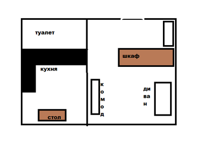 А 20 метров это сама комната? Можешь на этой же картинке метраж каждой площади указать (туалет кухня комната)