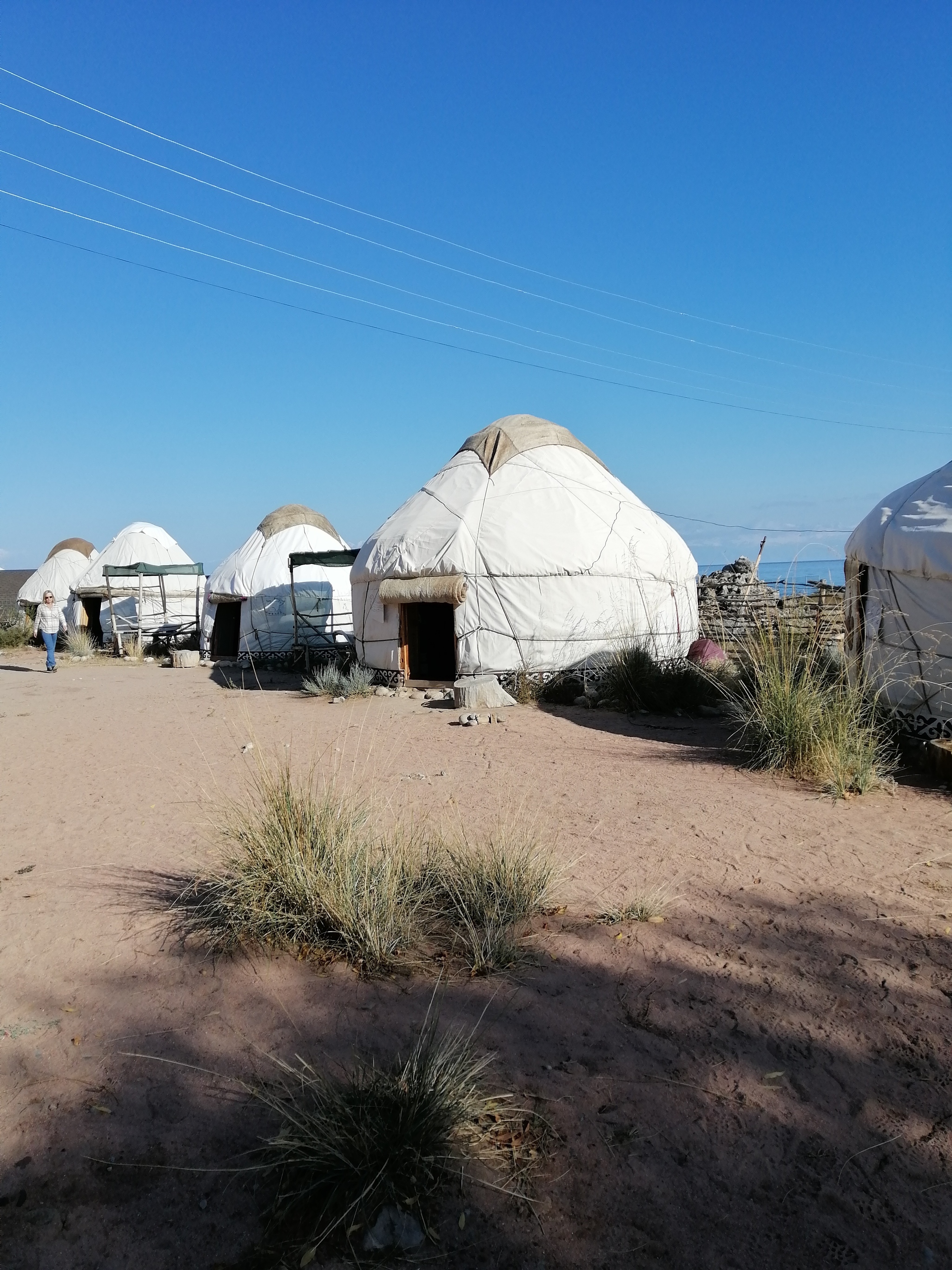Ночевали в юртах на берегу Иссык-Куля. Шесть человек из группы купались в озере, герои! Сказали - сначала холодно, потом тепло. Не тряслись, не синели)