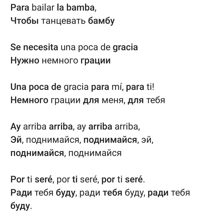 La bamba: дословный перевод песни с испанского языка
