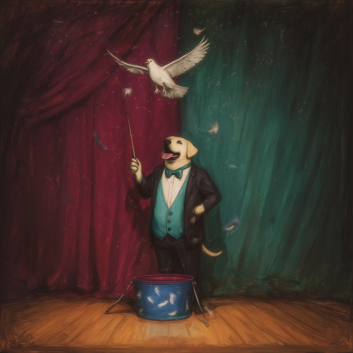 8 Absurdologique 1 день назад Midjourney Лабракадабрадор Больше каламбуров вк Больше каламбуров в тг [моё] Юмор Арты нейросетей Нейронные сети Странный юмор Игра слов Фокусник Фокус Midjourney Каламбур Собака Лабрадор Картинки Длиннопост 1 Ещё 0