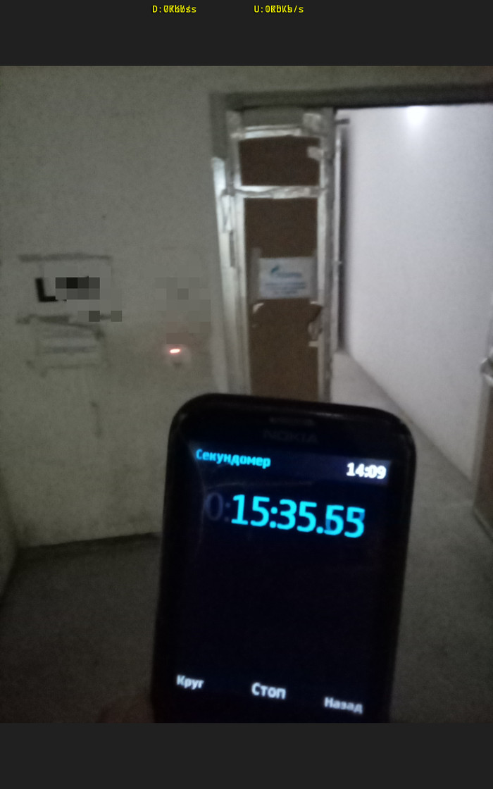 (на фото лестничная площадка 35 этажа и секундомер - 15 минут 35 секунд).