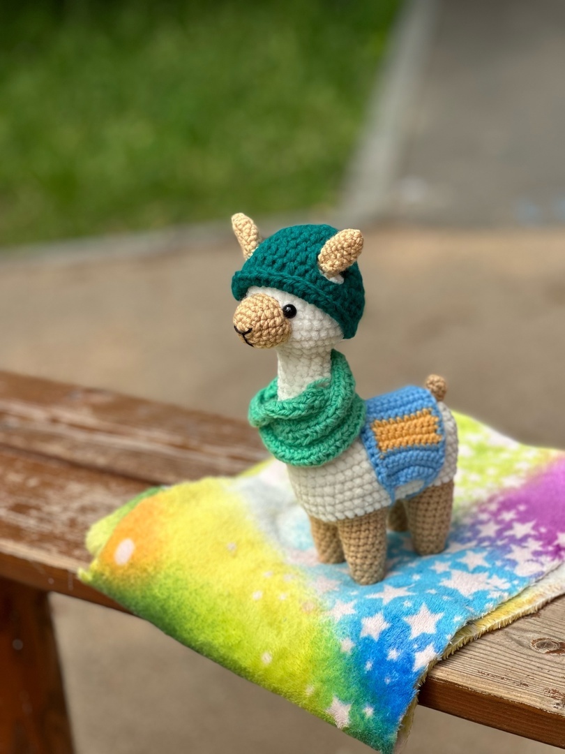 Я давно не использовала плюшевую пряжу, хотя она очень приятная на ощупь. Но я решила снова попробовать её в сочетании с обычной пряжей и выбрала ламу.