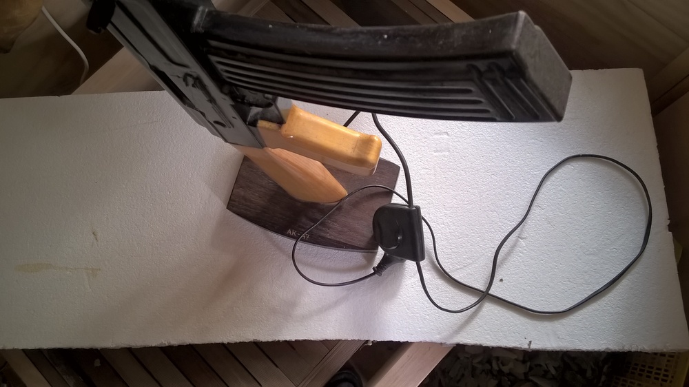 Все деревянное, но пропорции соблюдены . Просто как идея для старого солдата . Фоткал на Nokia 830