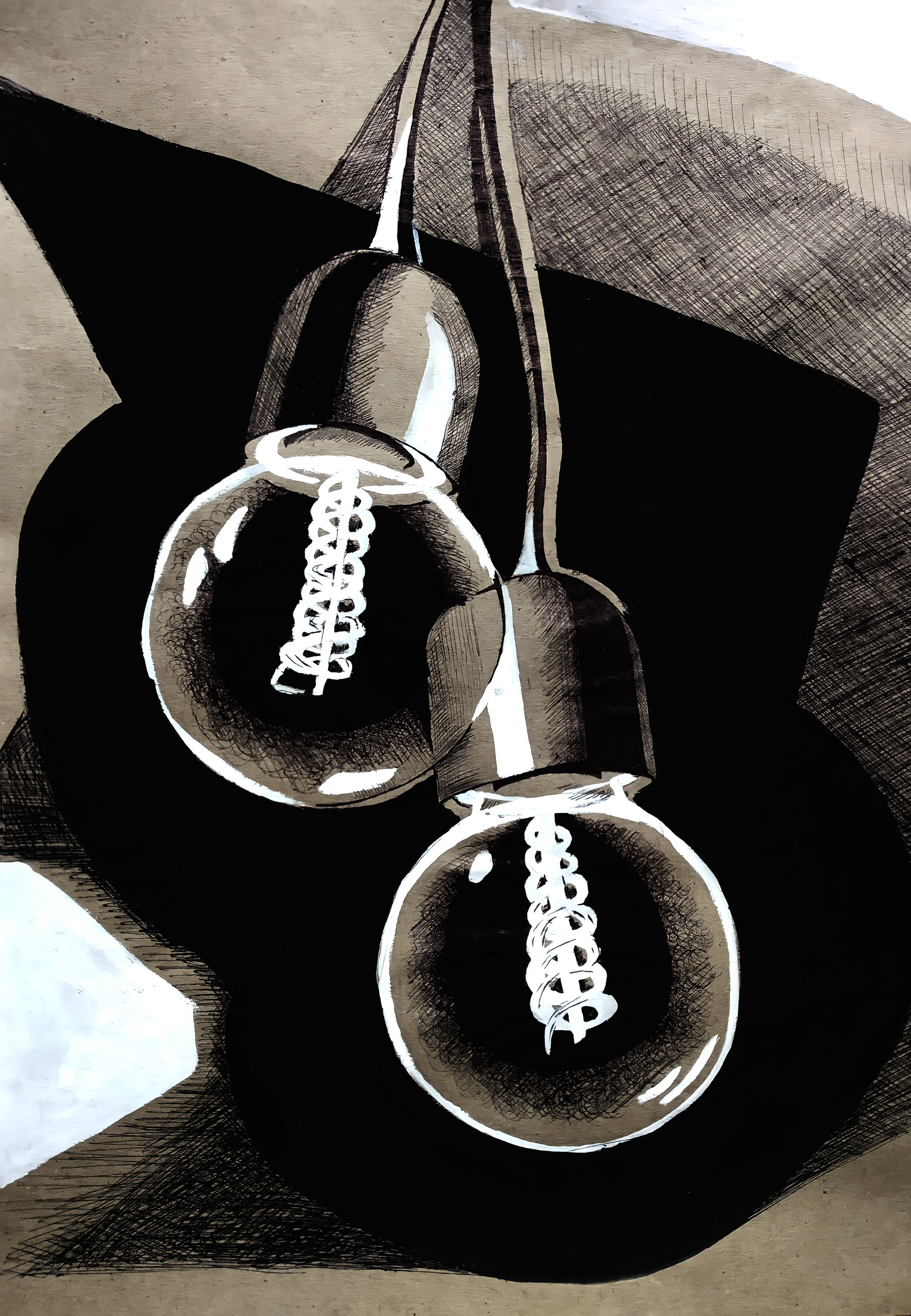 Крафтовая бумага, гелевая ручка, чёрно-белая гуашь
