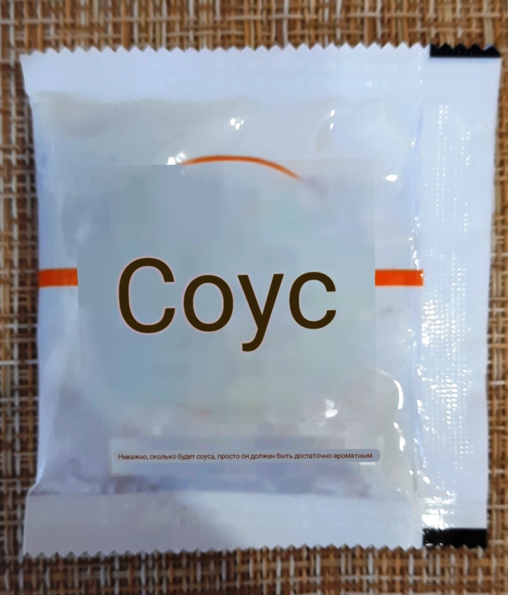 Также имеем пакет с соевым соусом. Впрочем он откровенно неудачный. Видимо сильно разбавлен. Практически без вкуса и запаха.