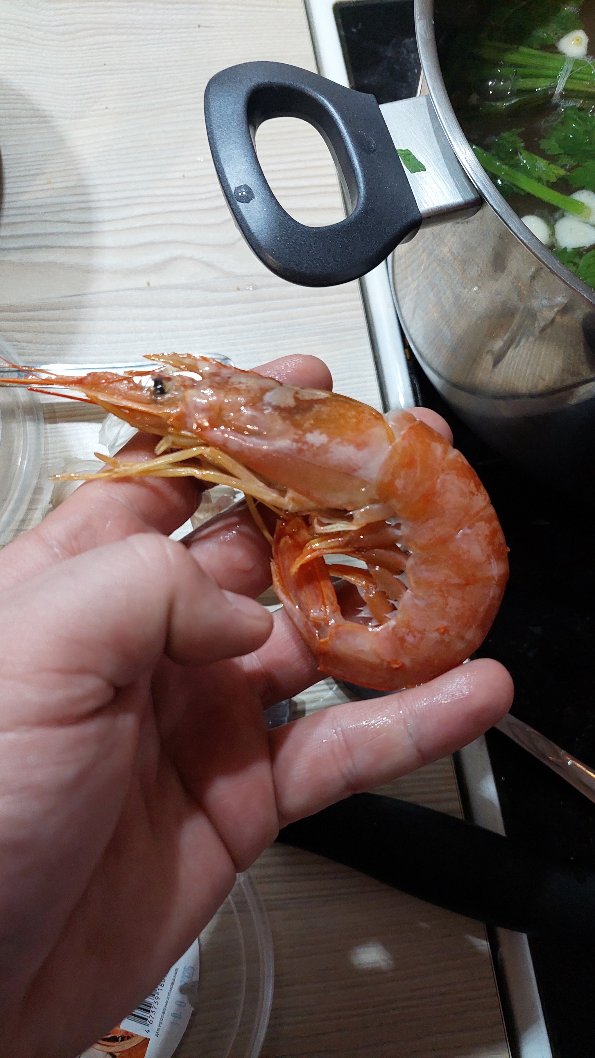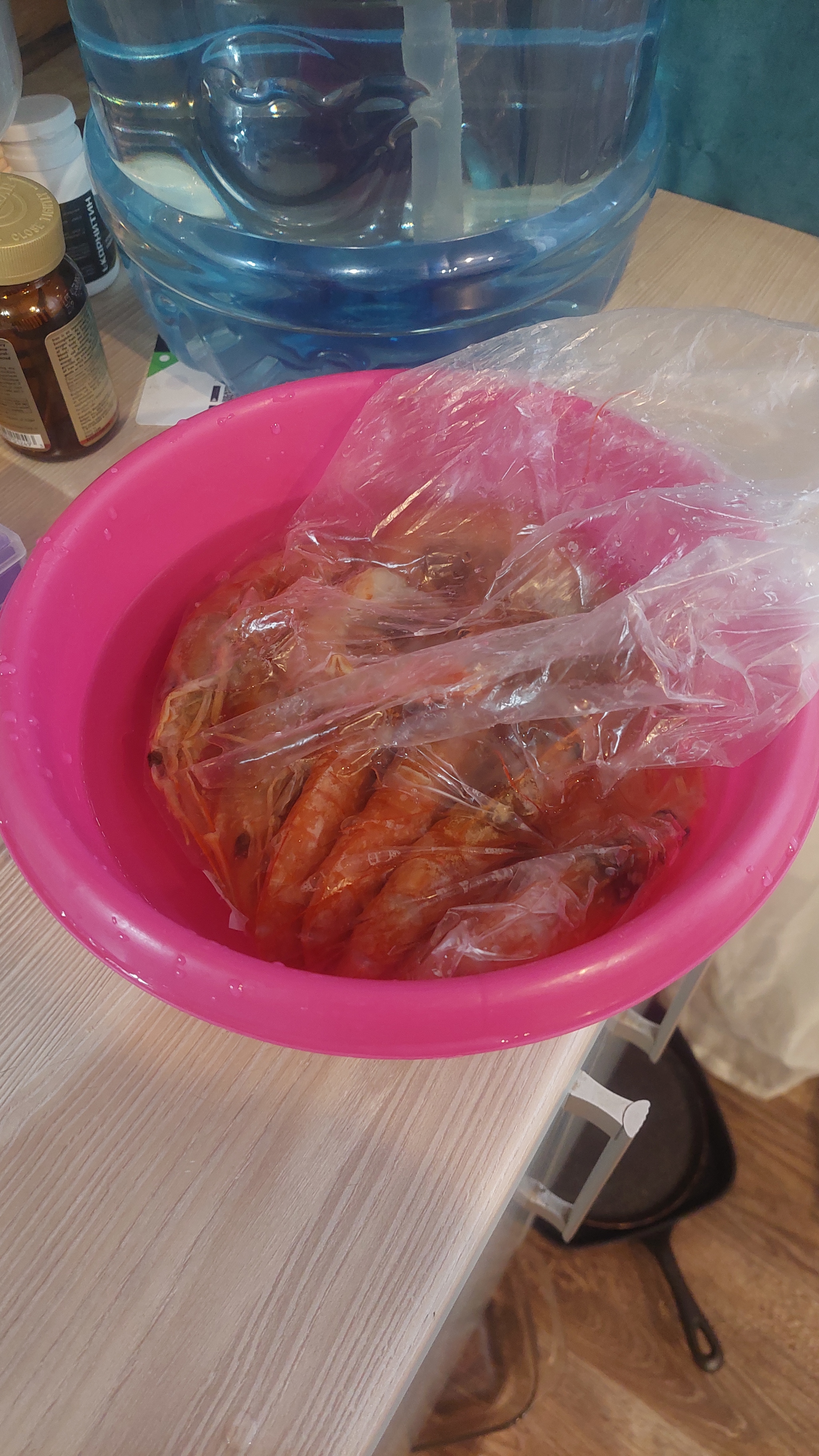 Супруга нашла лангустины за недорого - взяла полкило. В магазине сказали что они готовы, их нужно просто бросить в кипяток и через минуту достать.